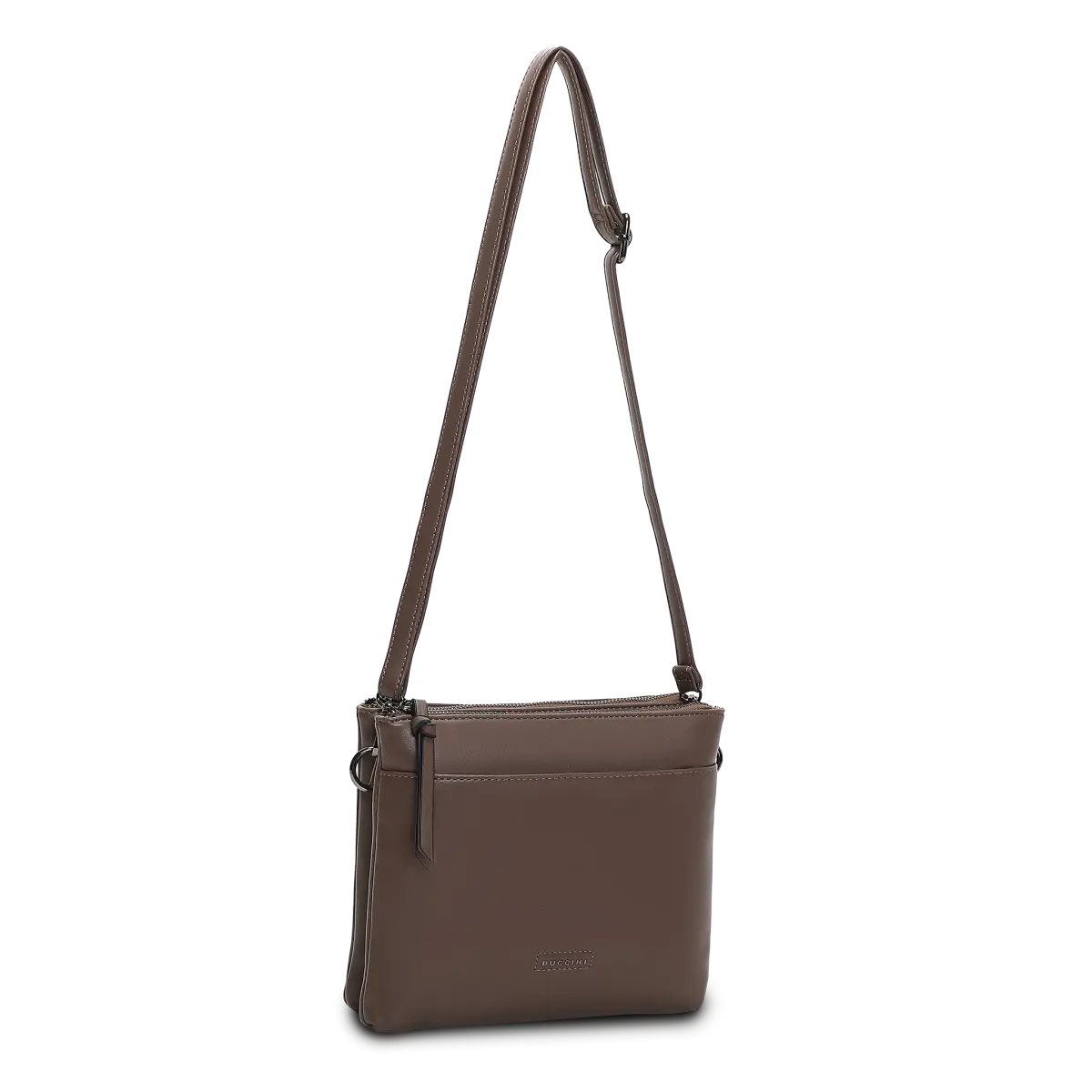 Puccini Melissa kommer med en steglöst reglerbar och avtagbar axelrem som erbjuder en dropplängd mellan 37 och 74 cm. Detta gör det enkelt att anpassa väskan för både axelbärande och crossbody-användning. Väskans mått – längd 24,5 cm, bredd 4,5 cm och höjd 20,5 cm – ger en kompakt men tillräckligt rymlig modell för dagligt bruk. Den smidiga storleken i kombination med den lätta konstruktionen gör Melissa till ett bekvämt val för dig som vill bära endast det nödvändigaste.