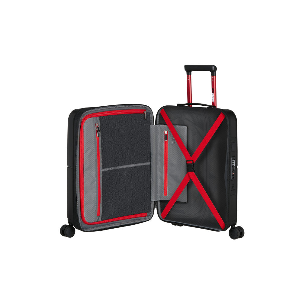 Denna kabinväska är både lätt och expanderbar, tillverkad i slitstark polypropylen. Med fyra dubbla hjul erbjuder den stabil och smidig manövrering. Väskan har också ett integrerat TSA-kodlås för ökad säkerhet under resan. Medföljande klistermärken gör det enkelt att ge väskan en personlig touch.