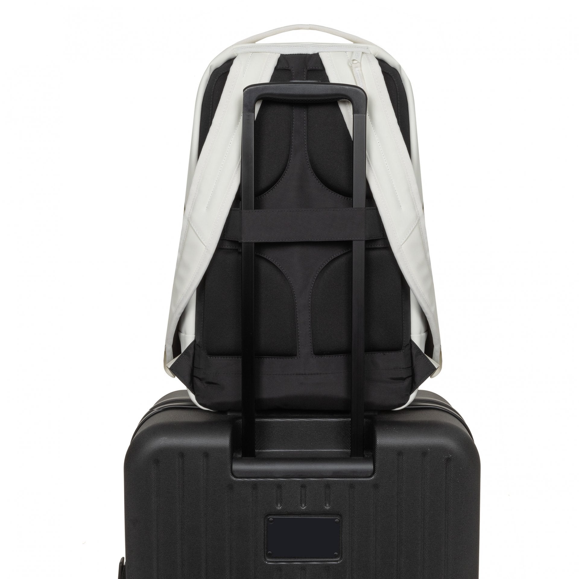 Ryggsäcken har ett huvudfack med inbyggd organisatör, samt en frontficka med dragkedja för snabb åtkomst. På sidan finns en flaskhållare och baksidan är utrustad med trolley strap – perfekt för att fästa väskan på en resväska vid längre resor.