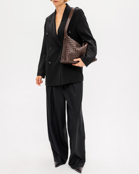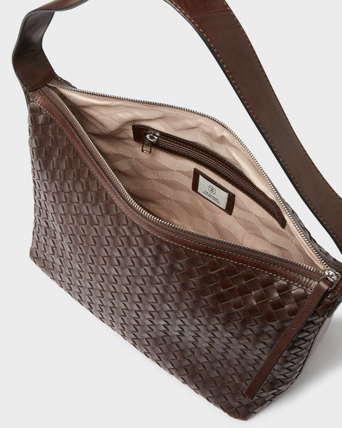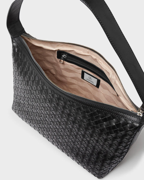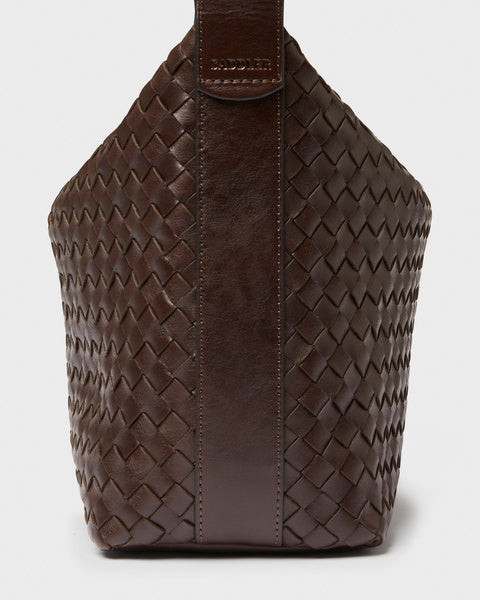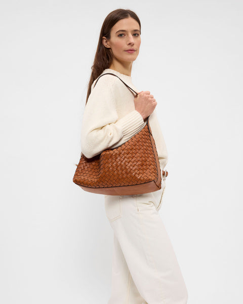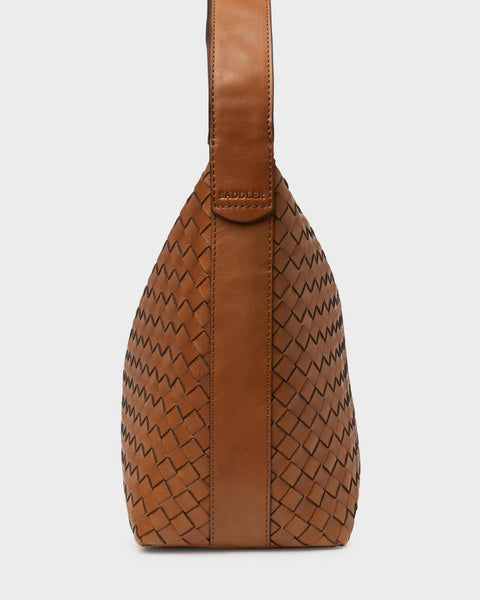 Axelväska Glan från Saddler är tillverkad i full grain-läder, vilket säkerställer en produkt av högsta kvalitet. Lädret har behandlats i ett garveri certifierat av Leather Working Group, vilket garanterar en hållbar och miljövänlig produktion. Den flätade designen ger väskan en unik och elegant look.