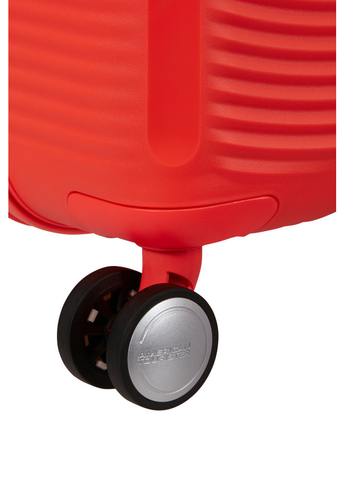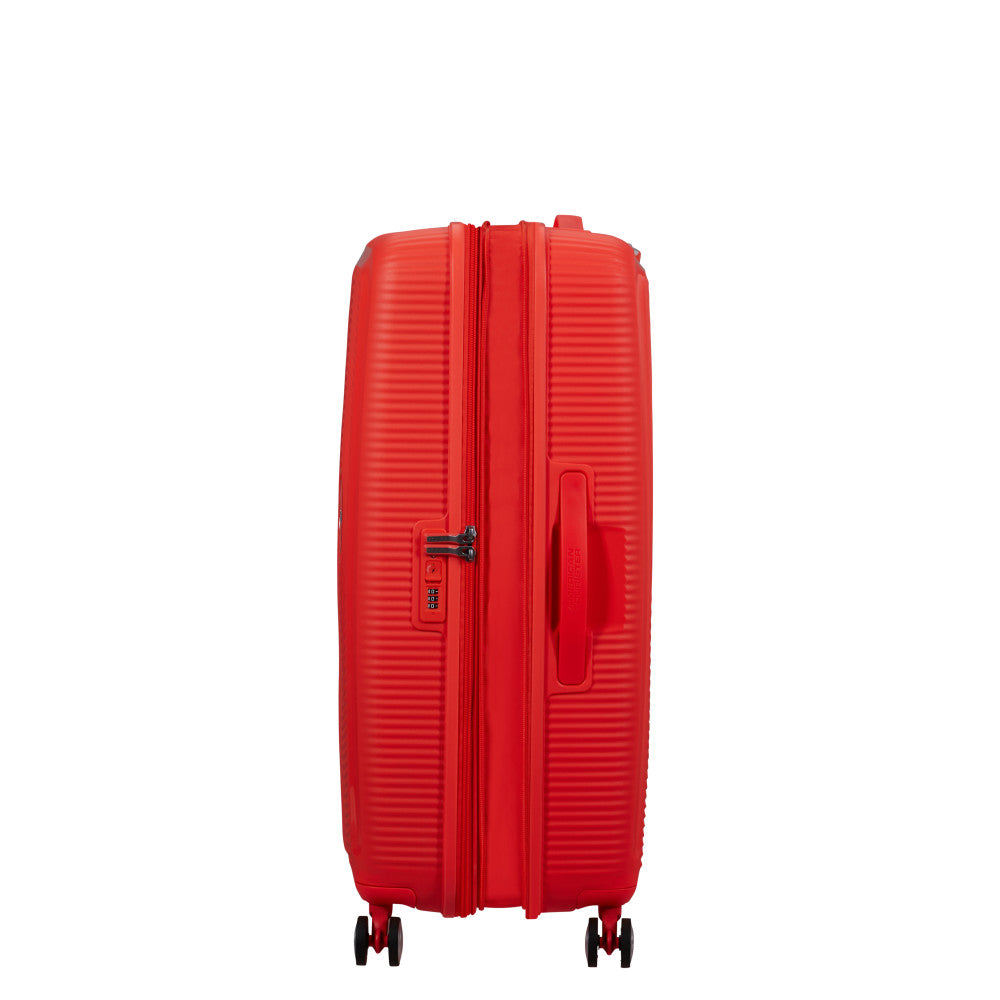 Soundbox Stor från American Tourister är en resväska som kombinerar modern design med funktionalitet. Inspirerad av en vinylskiva, har den en unik textur som gör att den verkligen sticker ut på bagagebandet. Denna resväska är inte bara ett stilval, utan också ett praktiskt val för den medvetna resenären.
