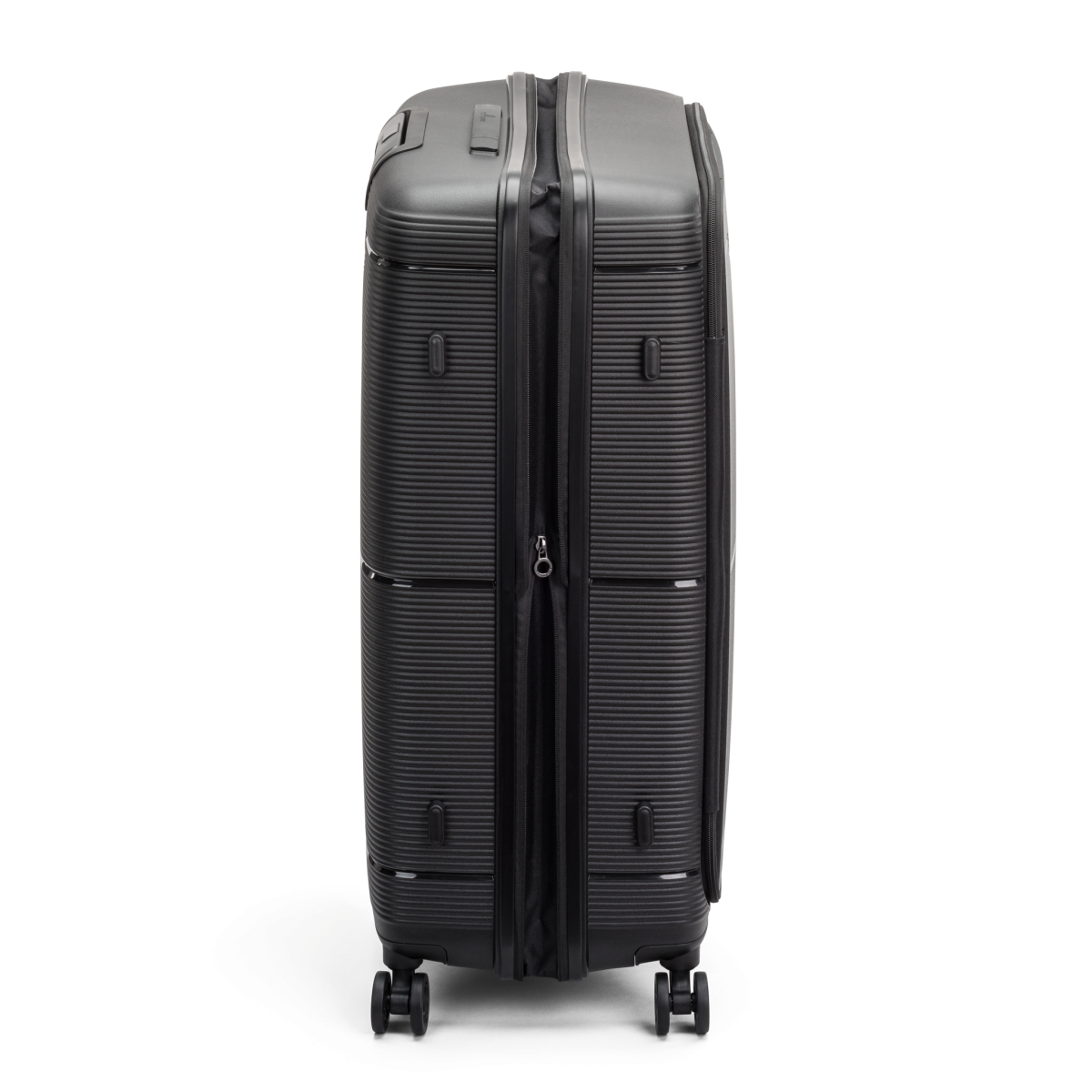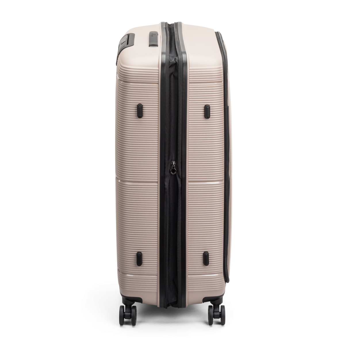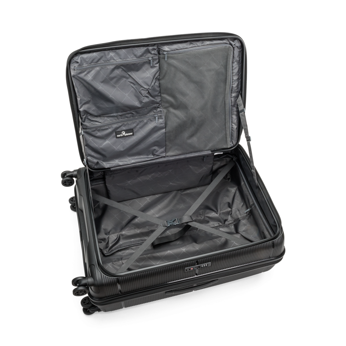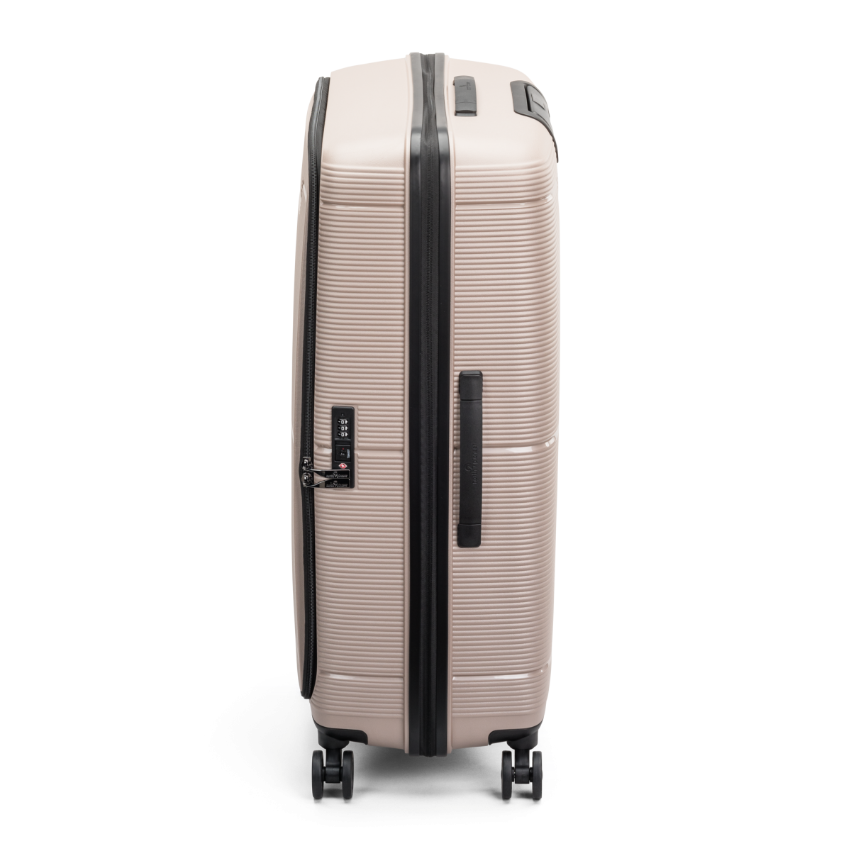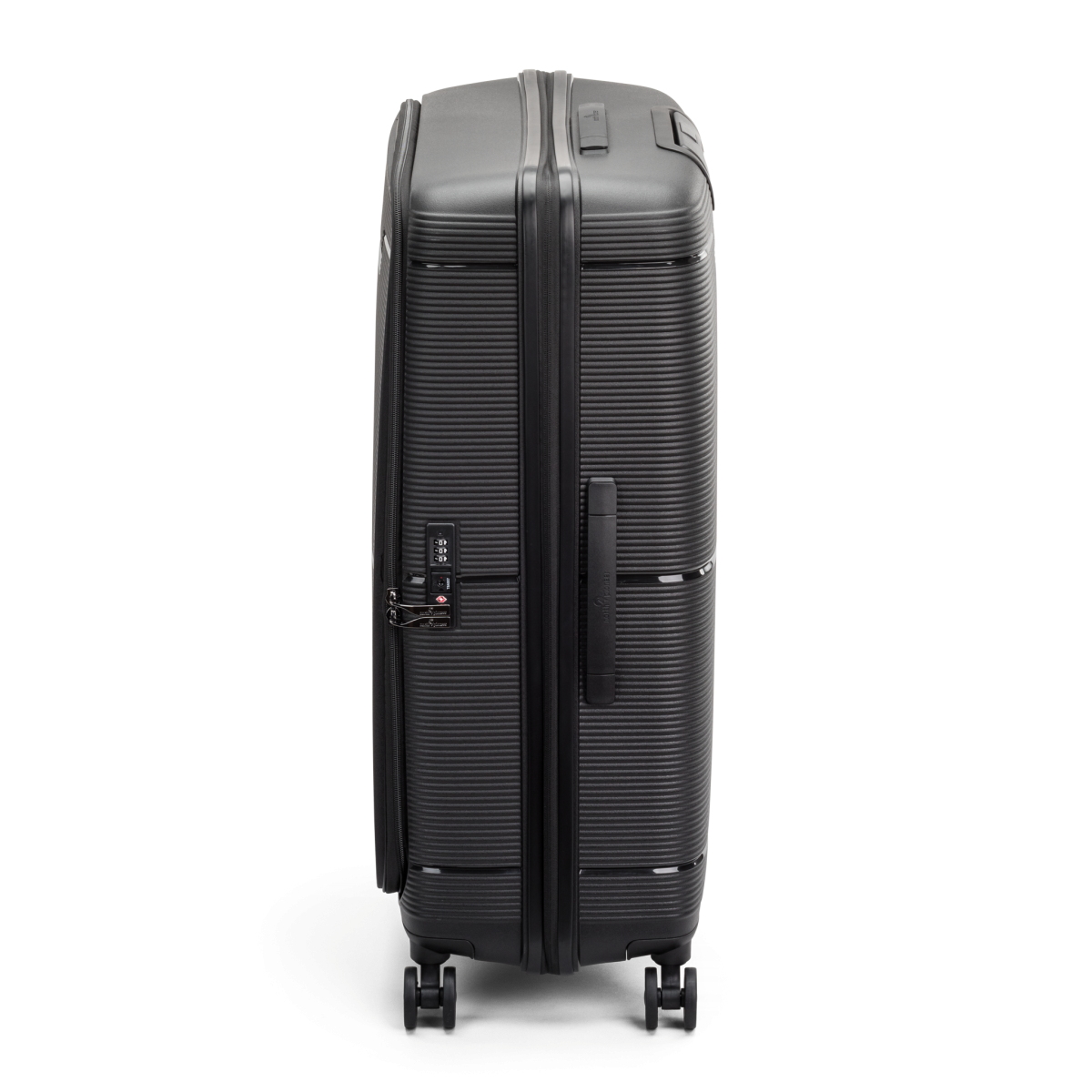Fynda nuNorth Pioneer Hongkong resväska är konstruerad av slitstark polypropylen, vilket gör den både lätt och robust. Med fyra dubbelhjul erbjuder den 360° rörelsefrihet, vilket underlättar manövrering i trånga utrymmen. Väskan är utrustad med ett starkt bärhandtag och ett TSA-godkänt lås för ökad säkerhet. Den finns tillgänglig i eleganta färger som svart och champagne.