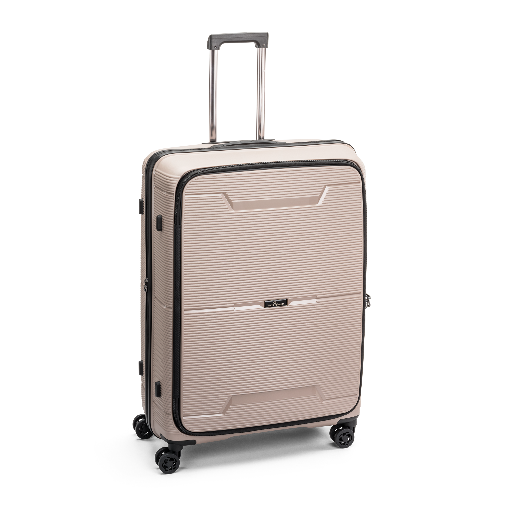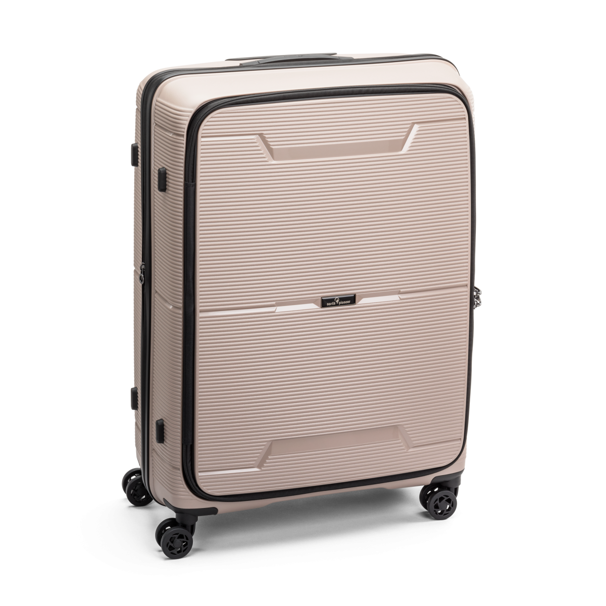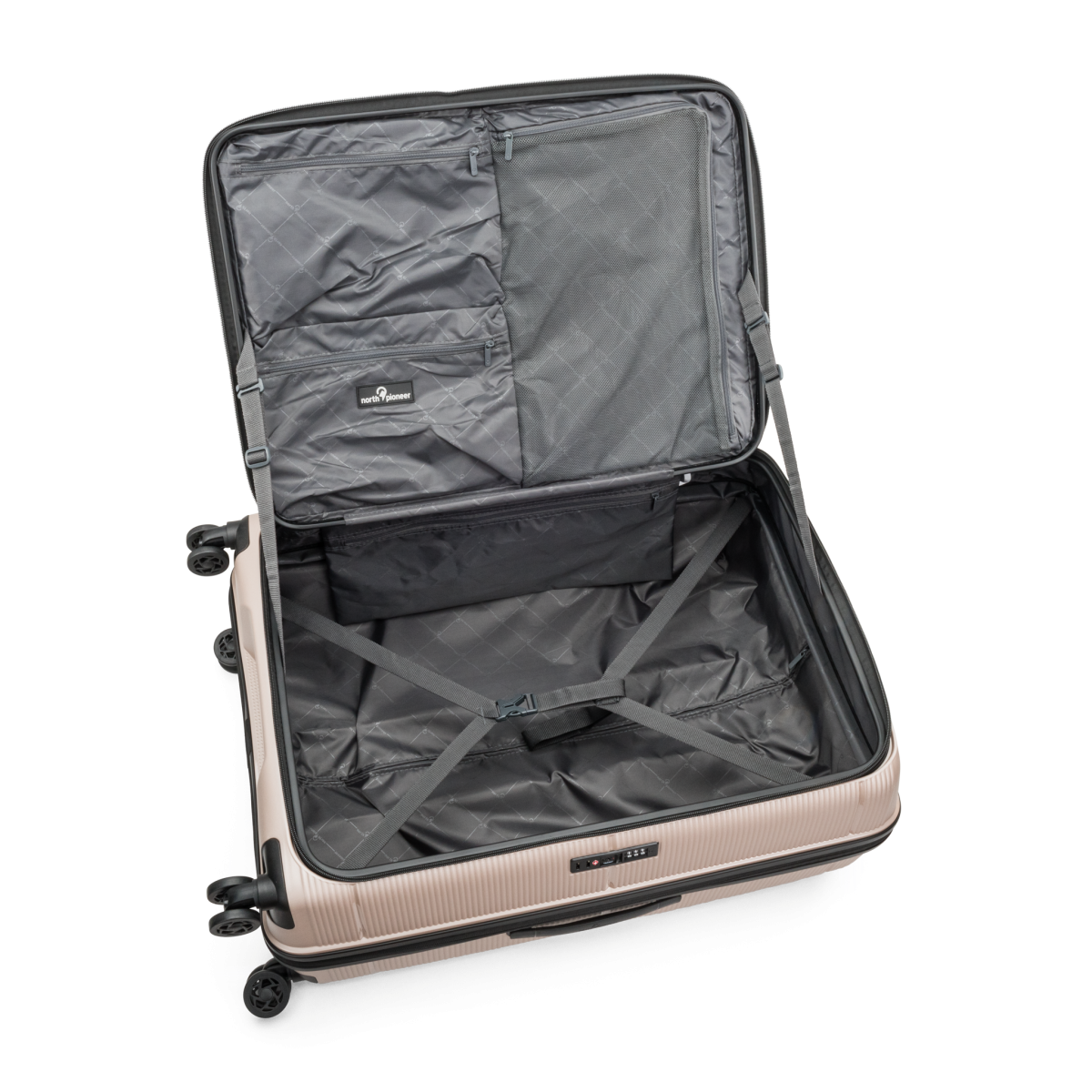 North Pioneer Hongkong resväska är konstruerad av slitstark polypropylen, vilket gör den både lätt och robust. Med fyra dubbelhjul erbjuder den 360° rörelsefrihet, vilket underlättar manövrering i trånga utrymmen. Väskan är utrustad med ett starkt bärhandtag och ett TSA-godkänt lås för ökad säkerhet. Den finns tillgänglig i eleganta färger som svart och champagne.