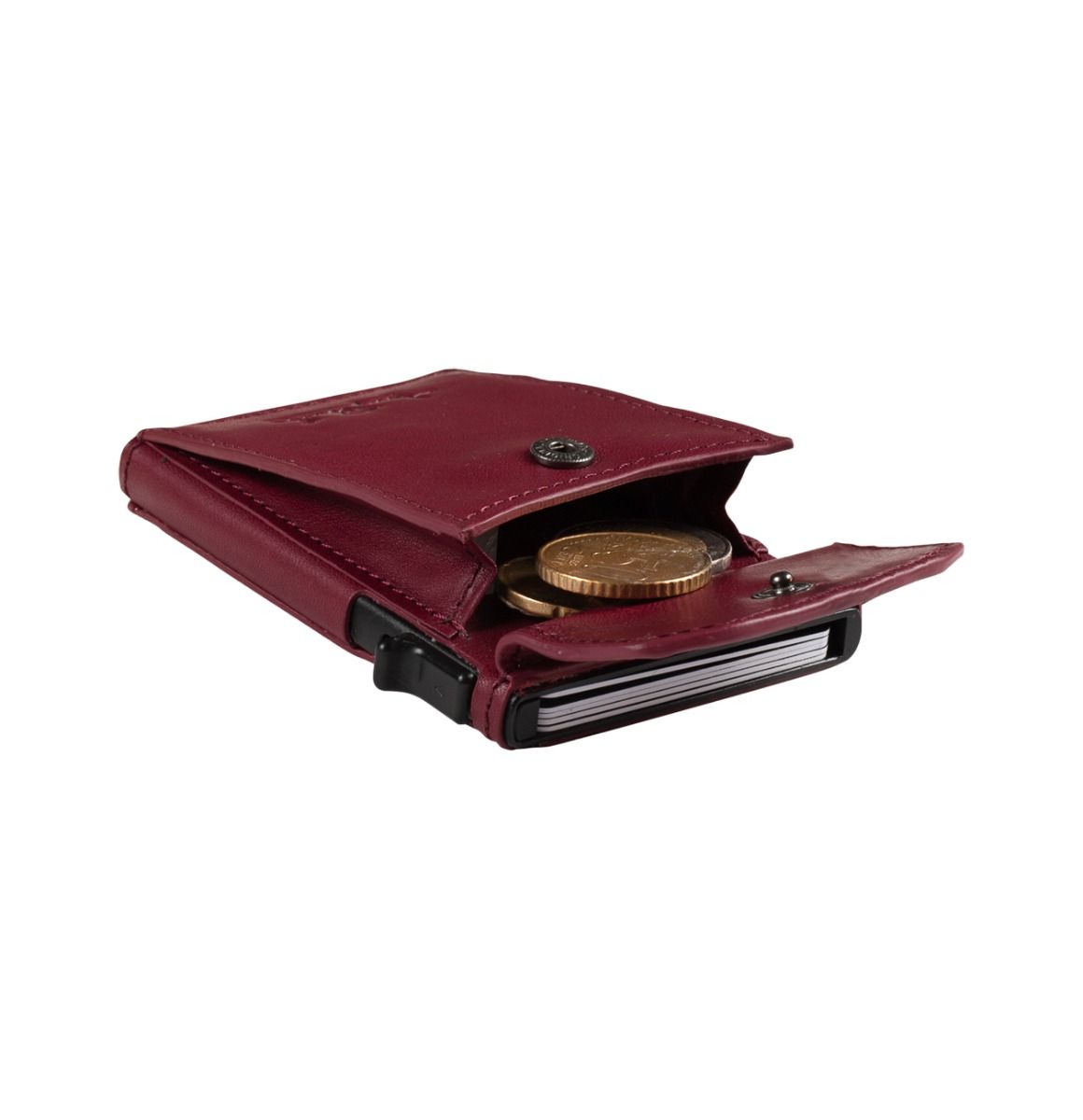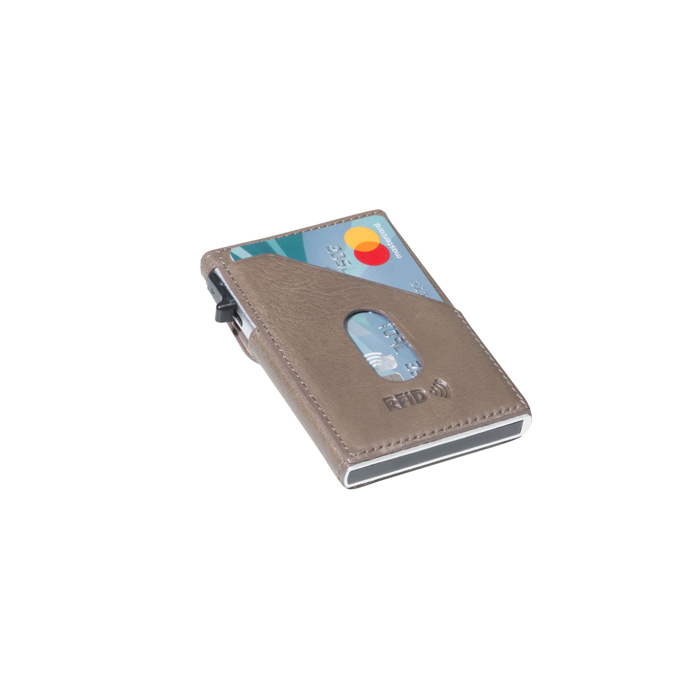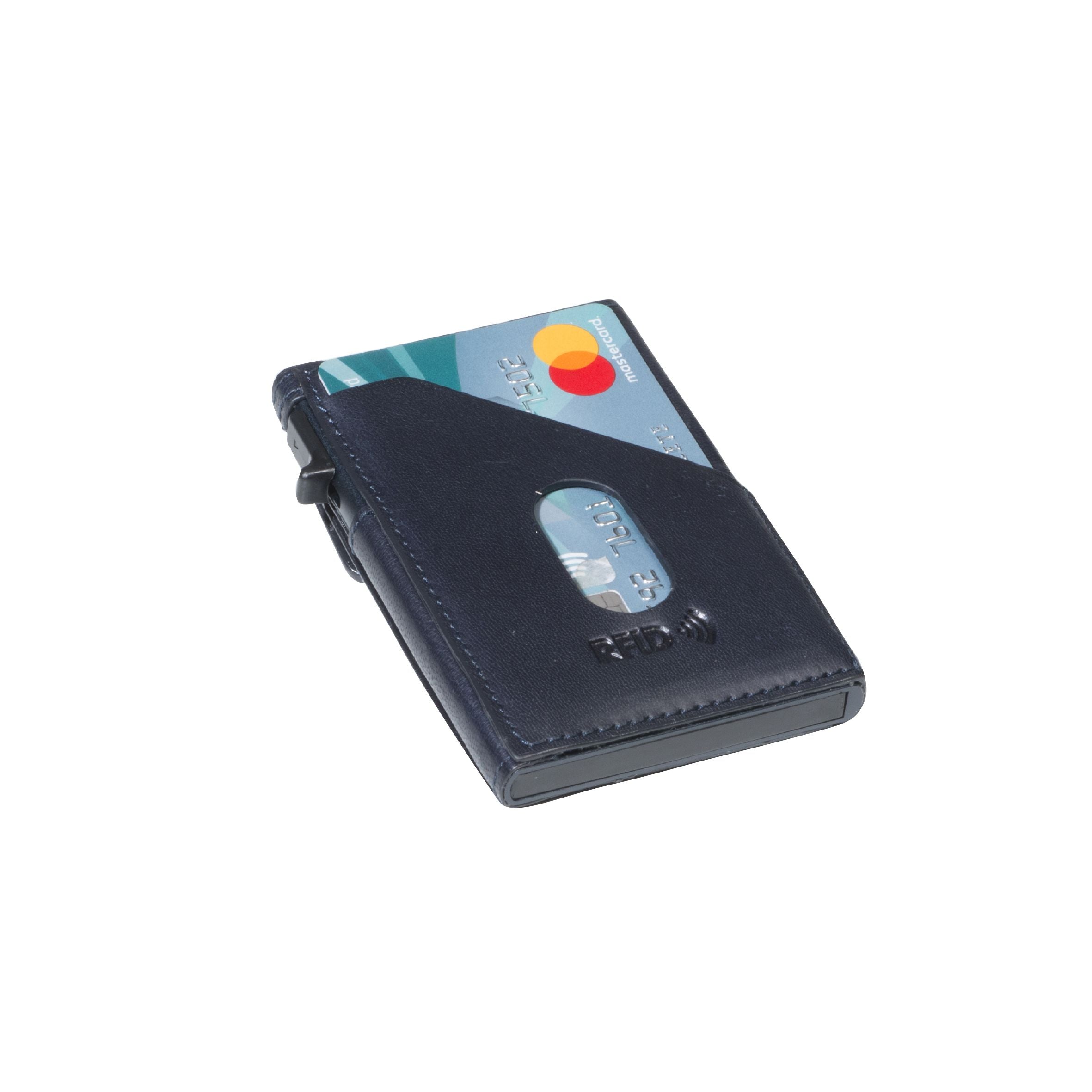 Korthållaren är utrustad med ett aluminiumgjutet kortfodral med pop-up-system som ger snabb åtkomst till korten. Kortsystemet rymmer mellan fyra och sex kreditkort och skyddar dem effektivt mot slitage. På baksidan finns plats för sedlar, kvitton eller ett extra kort, vilket gör korthållaren funktionell trots sitt slimmade format.