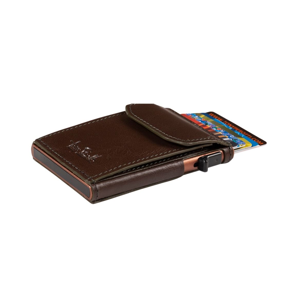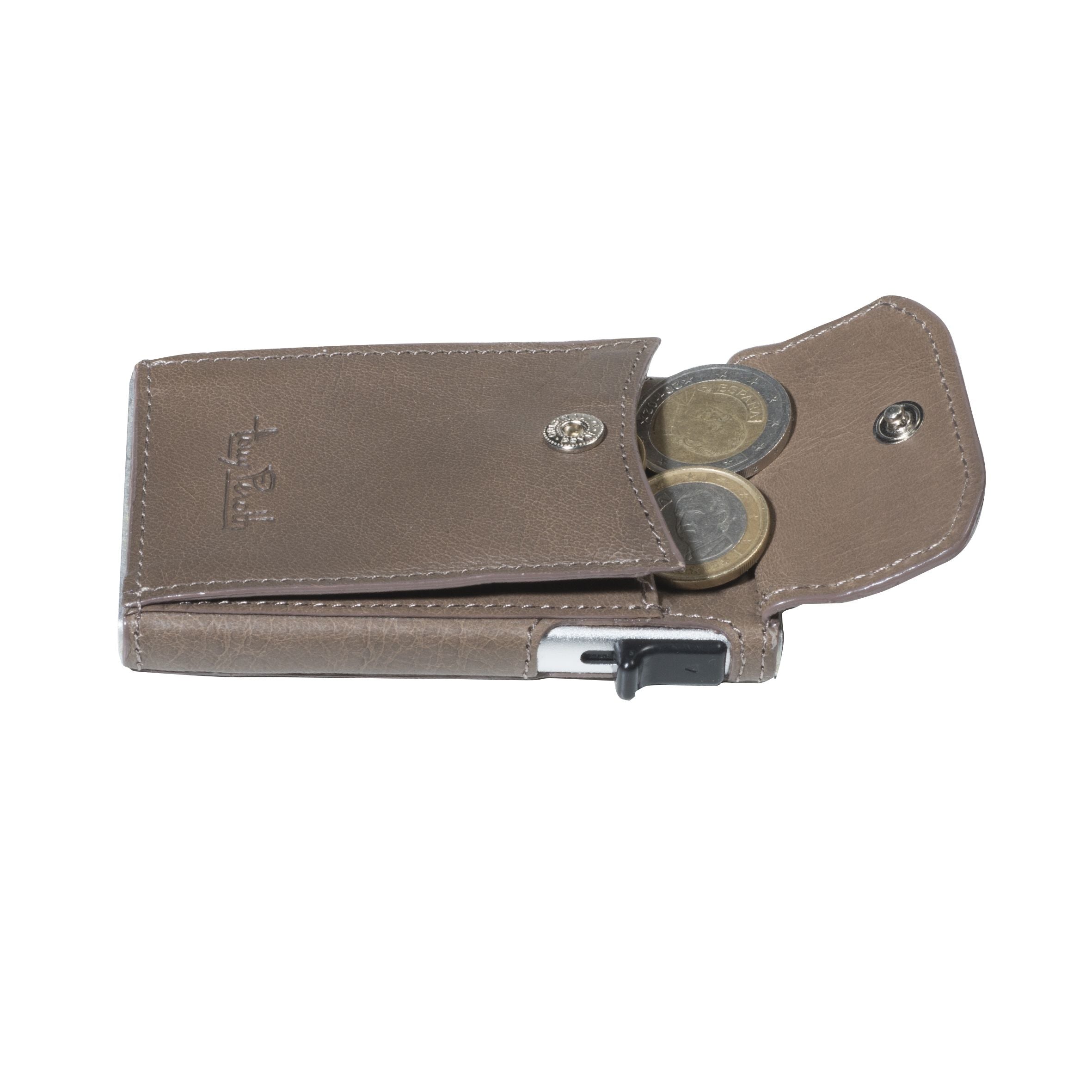 Tony Perotti Vegetale Slim med myntficka är en smidig och stilren korthållare i vegetabiliskt garvat läder, framtagen som ett modernt alternativ till den traditionella plånboken. Det kompakta formatet gör att korthållaren enkelt får plats i byxfickan eller handväskan, samtidigt som den erbjuder praktiska funktioner för vardagens behov. Den avskalade designen gör den väl lämpad för daglig användning.