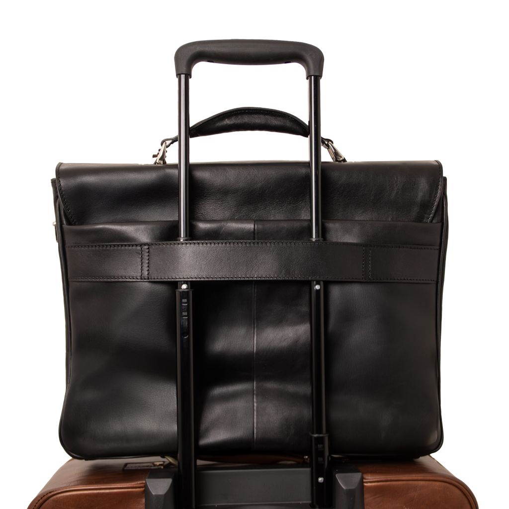 Tuscany Leather Alessandria är en lyxig portfölj i matt fullnarvat handbetsat vegetabiliskt garvat läder. Materialet ger en unik karaktär och hög slitstyrka, medan den halvstyva strukturen gör att väskan behåller sin form samtidigt som den känns smidig i användning. Den eleganta utsidan pryds av en graverad Toscana-logotyp i metall och erbjuder flera praktiska detaljer såsom en framficka med stängning, en bakficka samt en trolleyficka som gör det enkelt att fästa portföljen på en rullväska. Kombinationen av borstad mässingsfärgad och silverfärgad hårdvara förhöjer det exklusiva intrycket.
