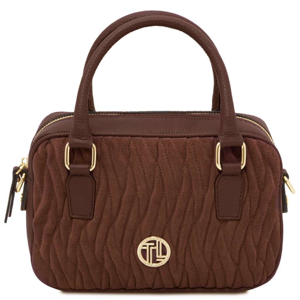 Fynda nuTuscany Leather Chantilly är en sofistikerad handväska i en kombination av pebbled leather och mocka. Den halvstyva strukturen ger väskan en elegant form som håller sig över tid, medan de skyddande metallfötterna på botten både bidrar till hållbarhet och förhöjer den exklusiva känslan. Den diskreta TL-logotypen i metall och den guldfärgade hårdvaran förstärker väskans stilrena uttryck.