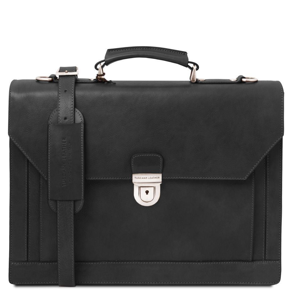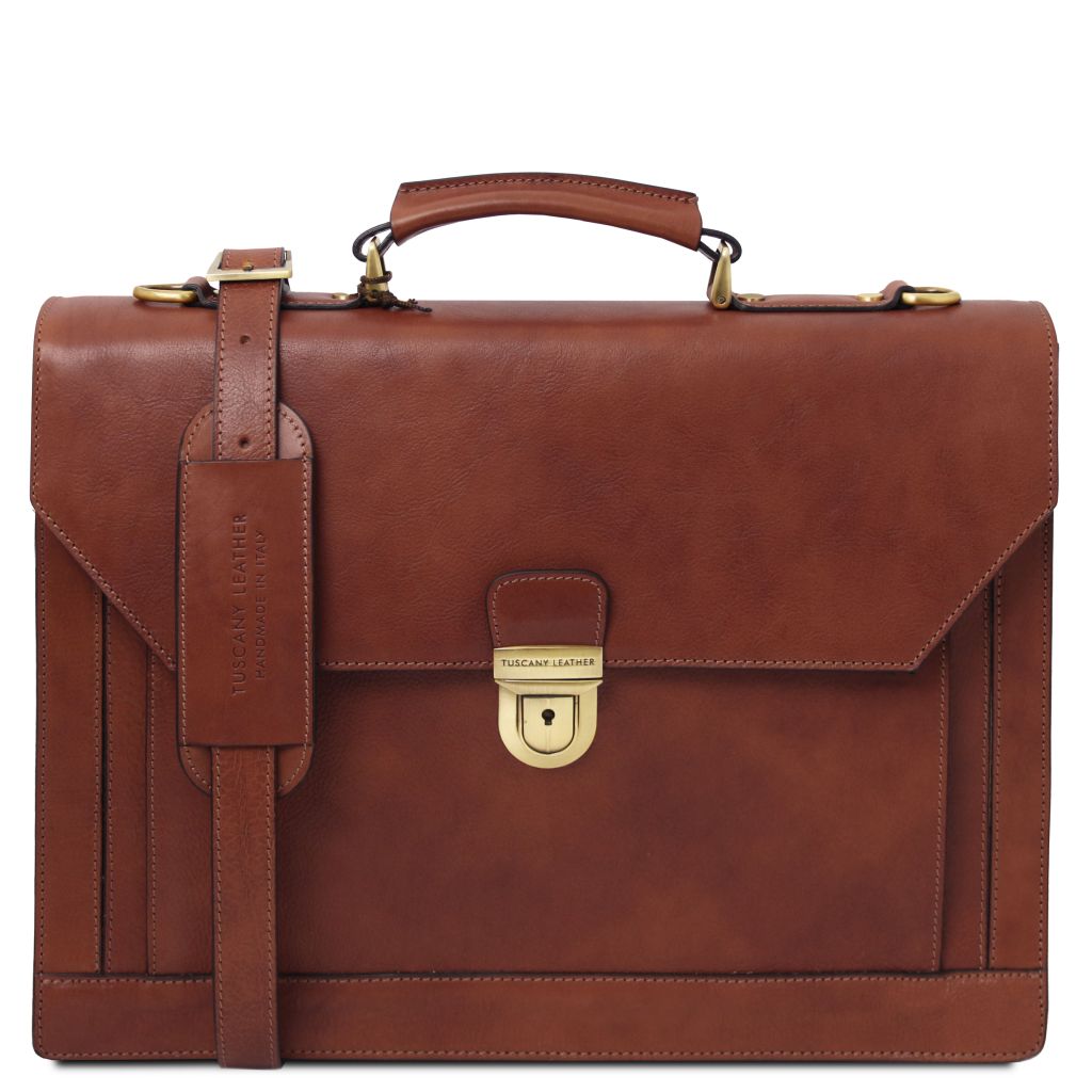Fynda nuTuscany Leather Cremona är en exklusiv portfölj tillverkad i matt fullnarvat handbetsat vegetabiliskt garvat läder. Den stela strukturen ger väskan en robust och professionell form som håller sig över tid. På utsidan finns en ficka på framsidan samt en ficka med stängning på baksidan, vilket gör väskan både elegant och praktisk. Den graverade Tuscany Leather-logotypen på metallspännet förstärker helhetsintrycket av italienskt hantverk.