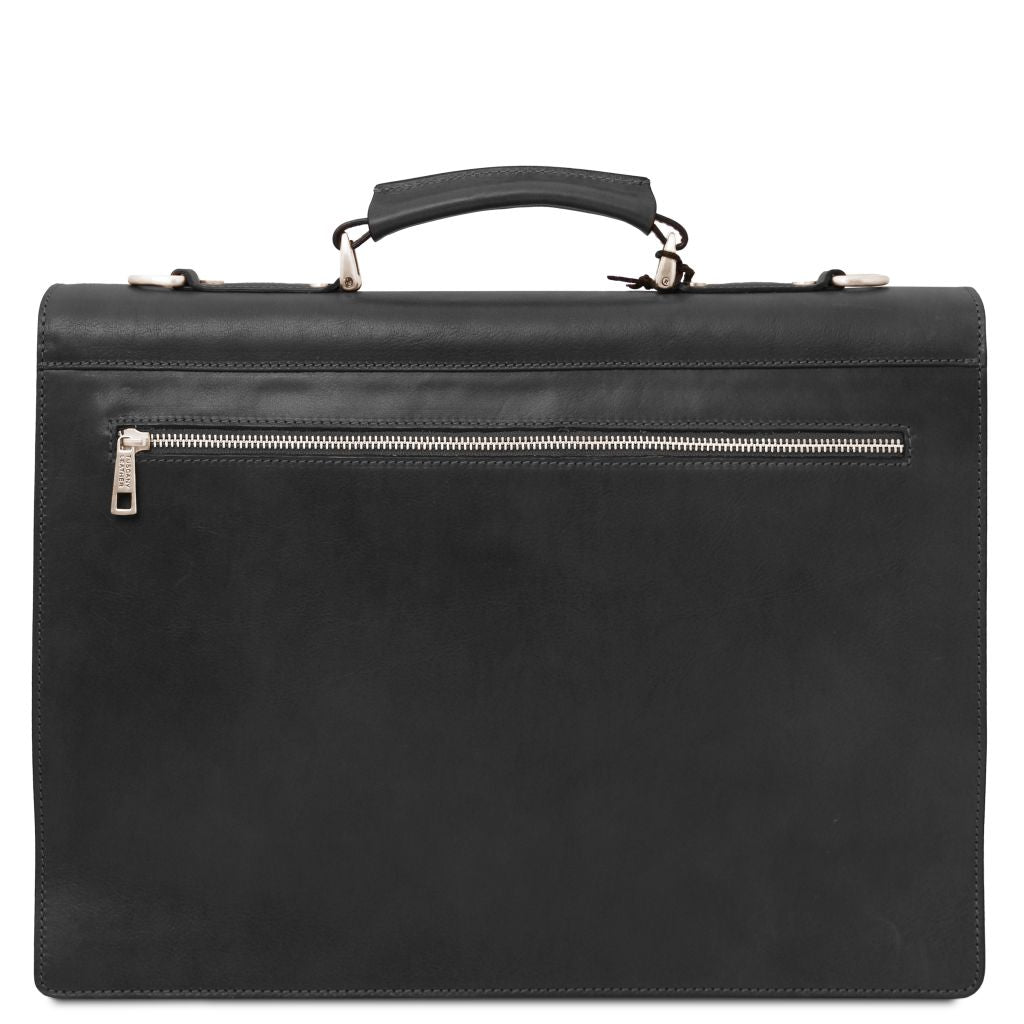 Tuscany Leather Cremona är en exklusiv portfölj tillverkad i matt fullnarvat handbetsat vegetabiliskt garvat läder. Den stela strukturen ger väskan en robust och professionell form som håller sig över tid. På utsidan finns en ficka på framsidan samt en ficka med stängning på baksidan, vilket gör väskan både elegant och praktisk. Den graverade Tuscany Leather-logotypen på metallspännet förstärker helhetsintrycket av italienskt hantverk.