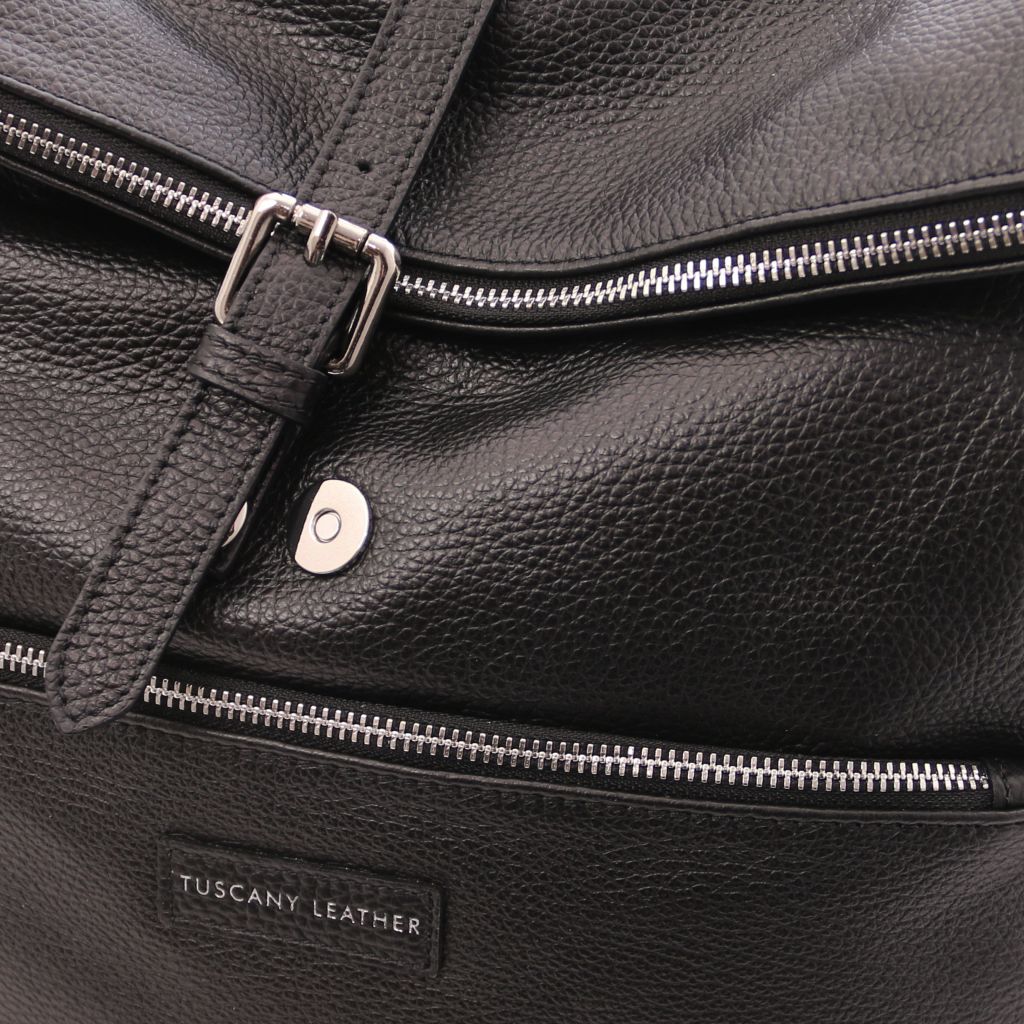 Tuscany Leather Denver är en ryggsäck i pebbled leather som kombinerar en mjuk struktur med funktionell vardagsanvändning. Den stilrena designen förstärks av silverfärgad hårdvara och en lädertag med varmpräglad Tuscany Leather-logotyp. En praktisk trolley sleeve på baksidan gör det möjligt att fästa ryggsäcken på en rullväska, vilket gör den till ett perfekt resesällskap.