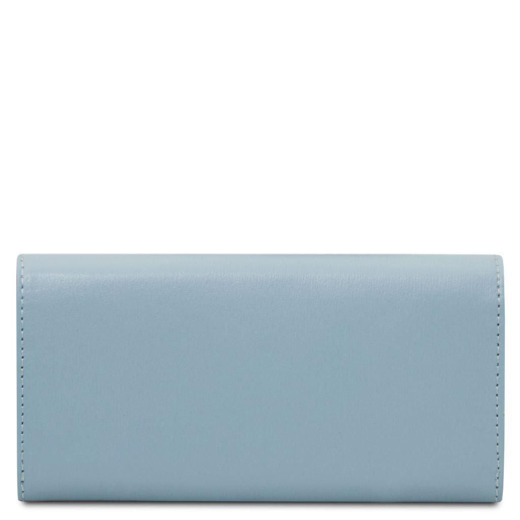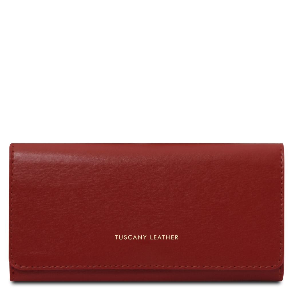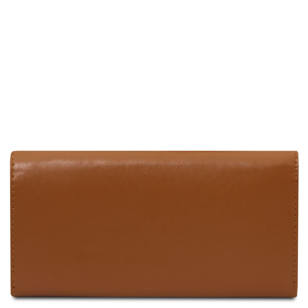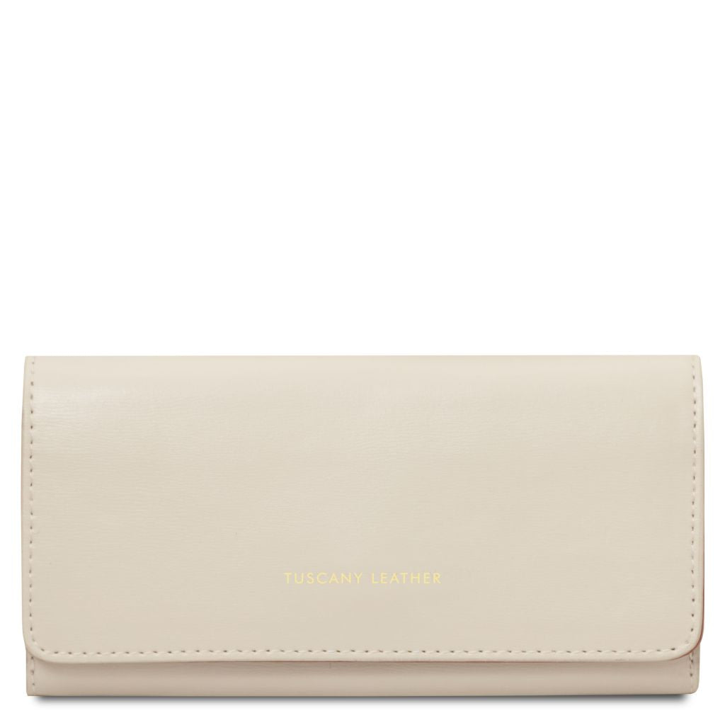 Tuscany Leather Diana Large är en exklusiv plånbok i box smooth leather, känd för sin släta yta och eleganta finish. Den stela strukturen ger plånboken en sofistikerad form som behåller sitt uttryck över tid. Utsidan pryds av en varmpräglad guldlogotyp från Tuscany Leather som förstärker det tidlösa intrycket.