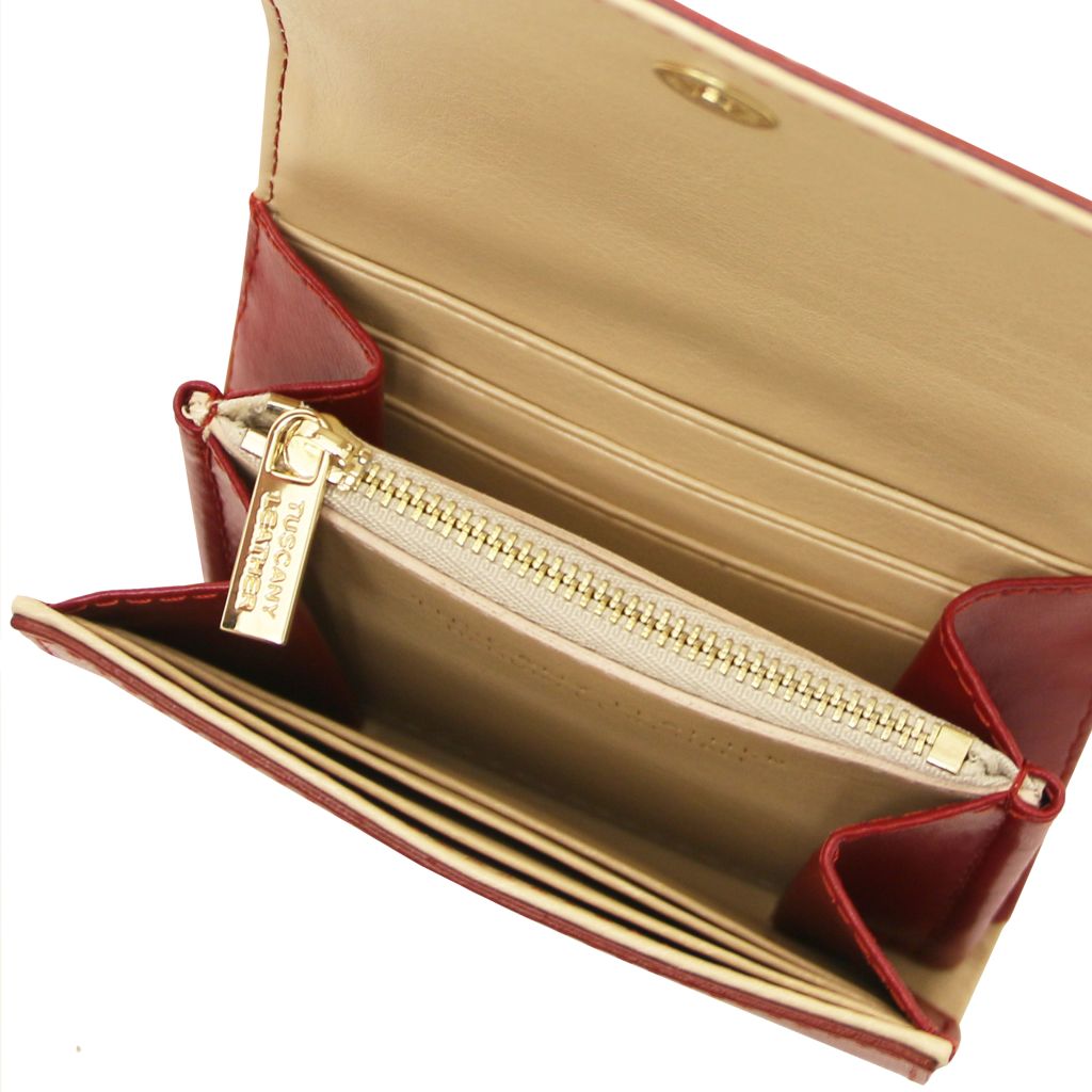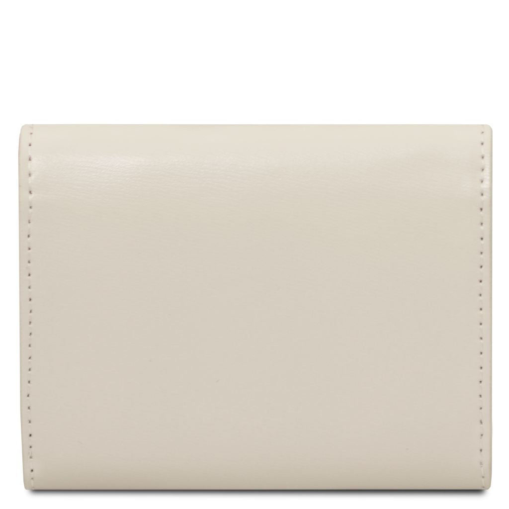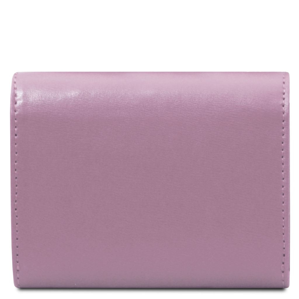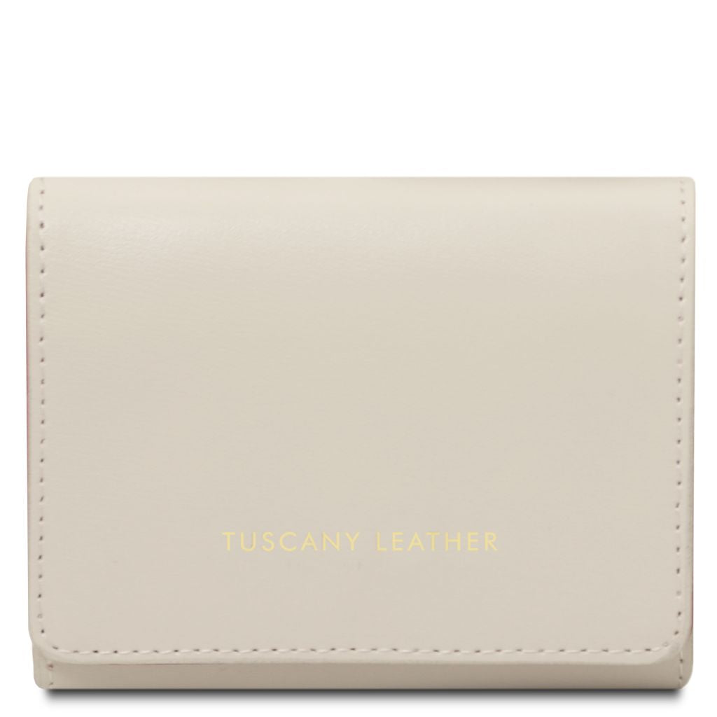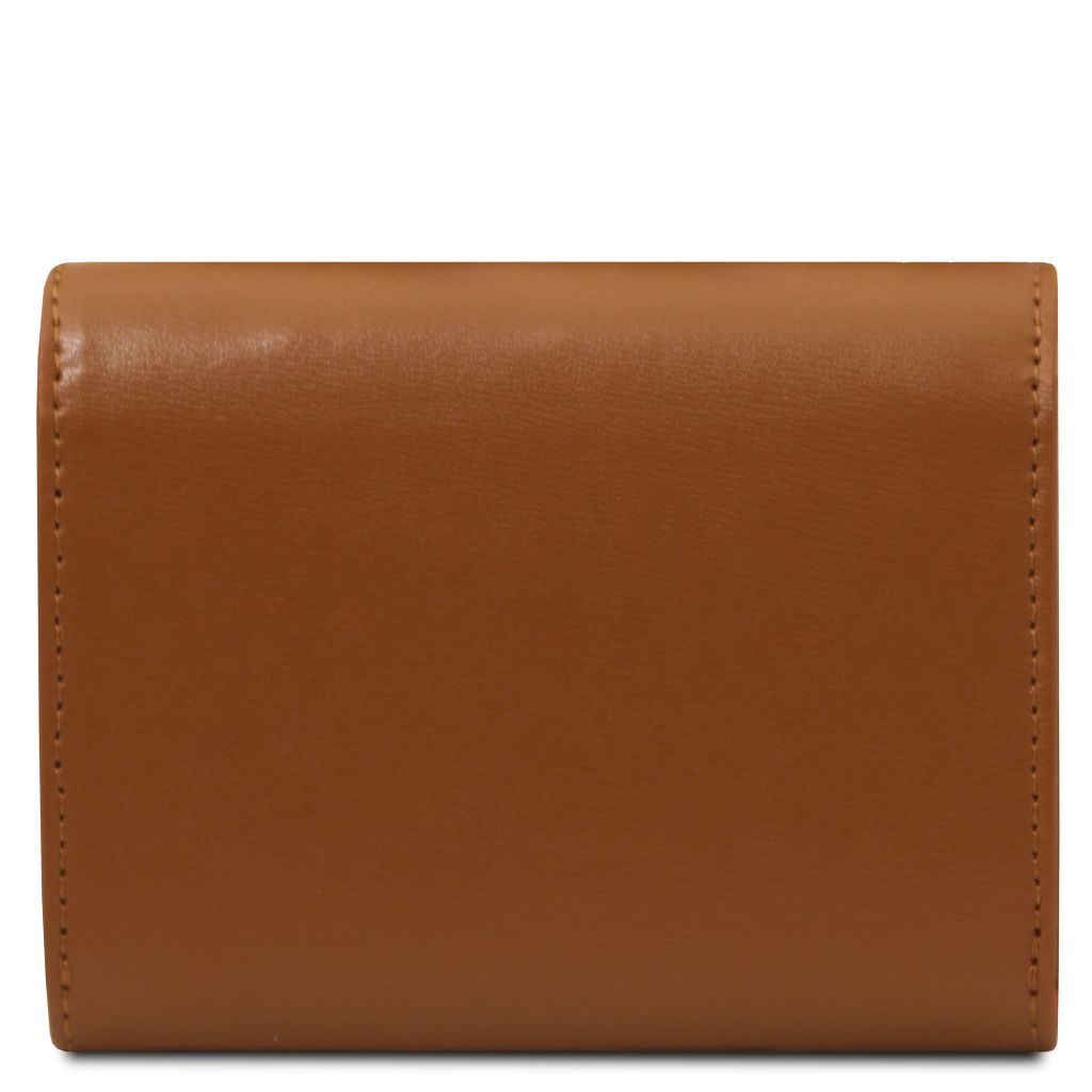 Tuscany Leather Diana Small är en stilren plånbok i box smooth leather, ett slätt läder som ger en lyxig och tidlös känsla. Den stela strukturen gör att plånboken behåller sin eleganta form, medan den varmpräglade guldlogotypen på utsidan markerar exklusivt italienskt hantverk.