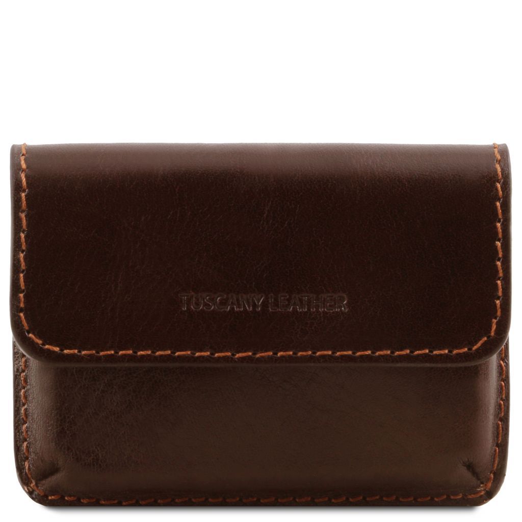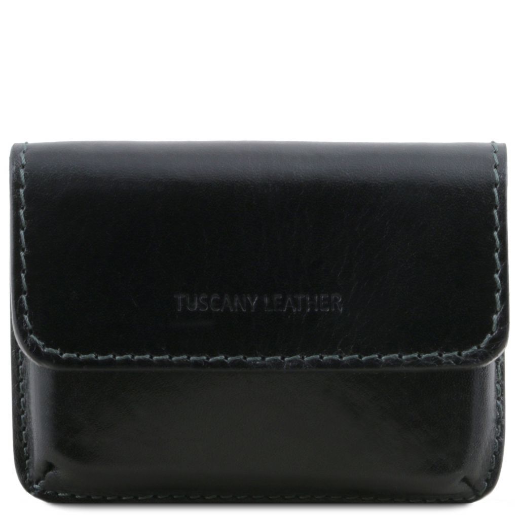 Tuscany Leather Exclusive korthållare är en elegant accessoar i fullnarvat läder med en stel struktur som håller formen över tid. Den varmpräglade Tuscany Leather-logotypen på utsidan markerar det italienska hantverket, medan silverfärgad hårdvara förstärker det sofistikerade uttrycket.