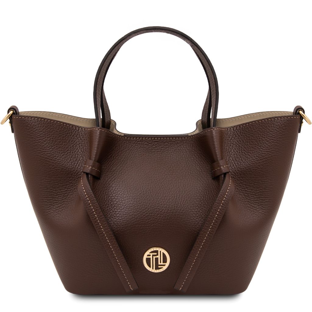 Tuscany Leather Legame är en sofistikerad handväska tillverkad i pebble-grain läder med en halvmjuk struktur. Den klassiska frame-modellen ger väskan en tidlös form som förstärks av metalloggan på framsidan och skyddande metallfötter undertill. Den rena designen gör den till en elegant accessoar för både vardag och speciella tillfällen.