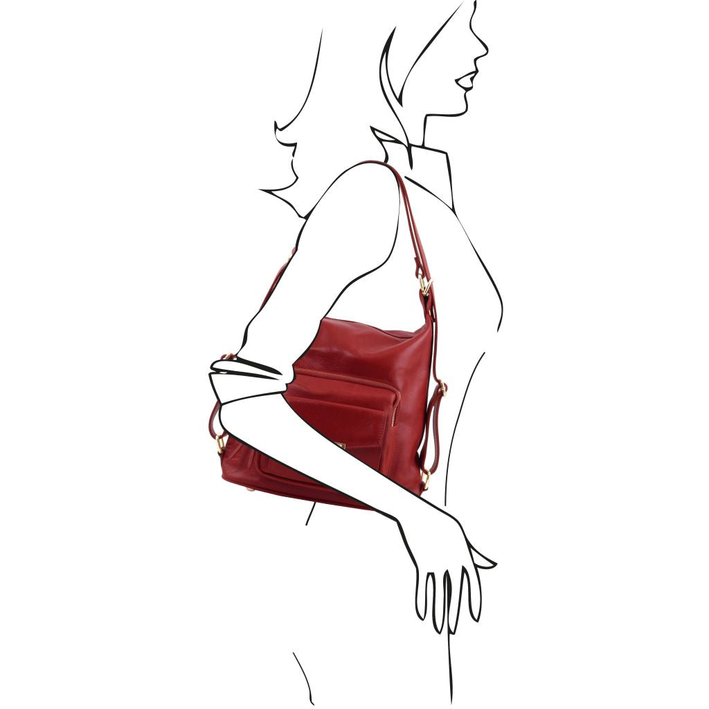 Tuscany Leather TL Bag är en mångsidig modell som kan användas både som ryggsäck och axelväska. Tillverkad i mjukt full grain-läder med en följsam struktur får väskan en naturlig och exklusiv känsla. Den eleganta designen förstärks av en diskret metallogo på framsidan samt guldfärgad hårdvara. Metallfötter på undersidan skyddar lädret vid daglig användning. Med sina mått 29,5 x 27 x 12,5 cm är väskan rymlig och funktionell, perfekt för både vardag och arbete.