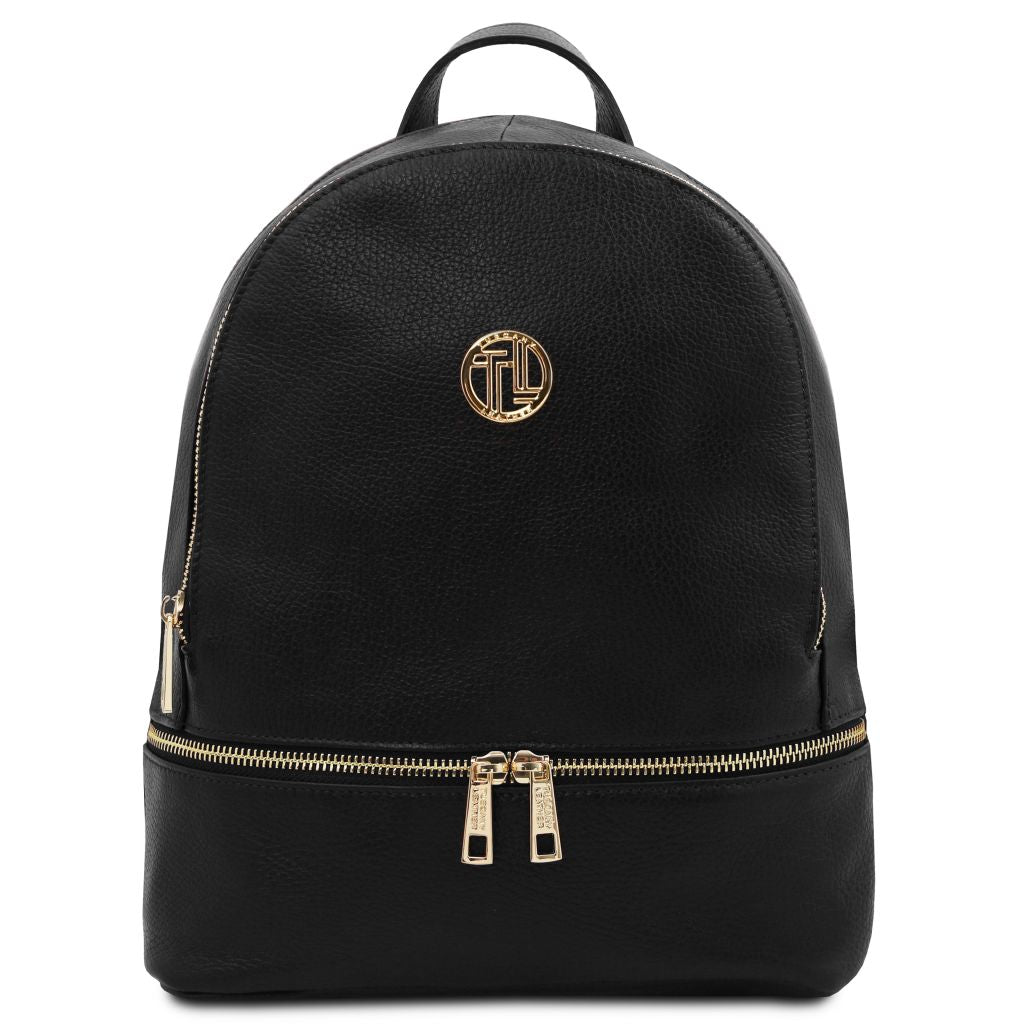 Tuscany Leather TL Bag är en elegant ryggsäck i pebbled leather med mjuk struktur som ger en naturlig och följsam känsla. Väskan har en stilren design med guldfärgad hårdvara och praktiska detaljer. På framsidan finns en ficka med stängning för snabb åtkomst, och på baksidan en säker dragkedjeficka. Med sina mått 26 x 29,5 x 12,5 cm är den både smidig och tillräckligt rymlig för vardagens behov.