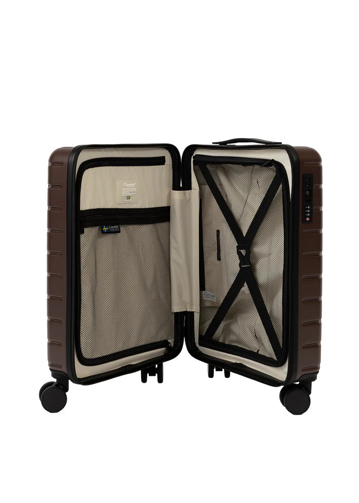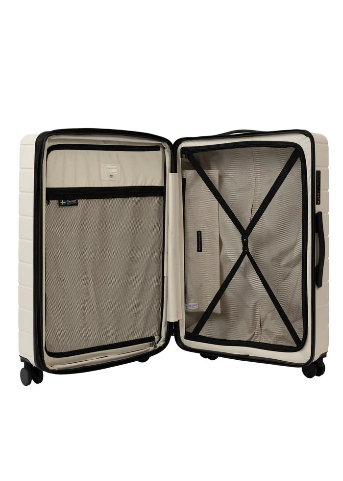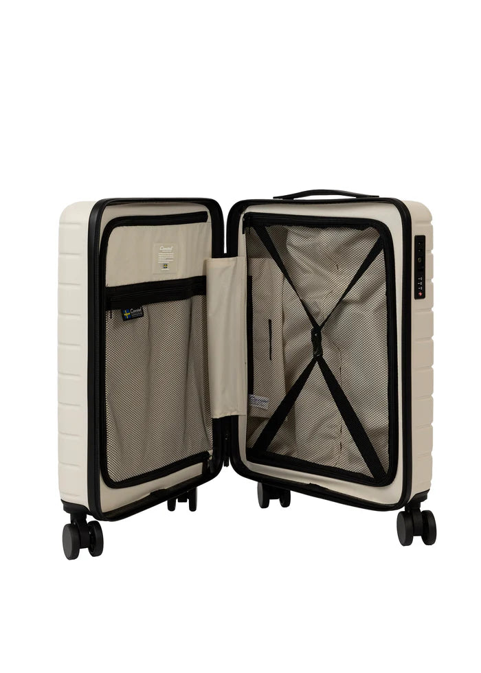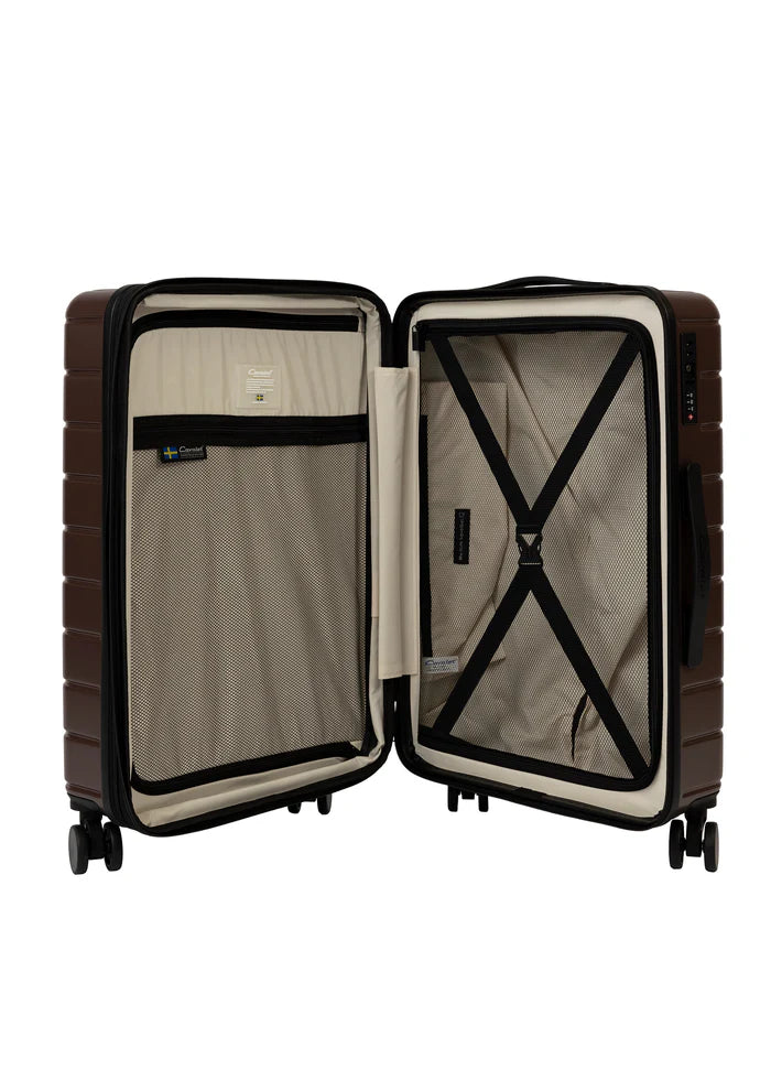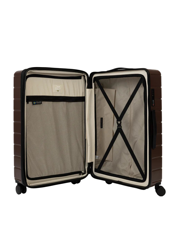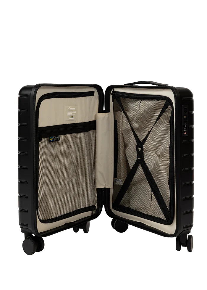 Cavalet Brantevik resväskor 3-pack är ett komplett set som består av kabinväska, mellanstor resväska och stor resväska, framtaget för dig som vill ha en genomgående stil och funktion för alla typer av resor. Väskorna är tillverkade i 100 % slitstark polykarbonat och kompletteras med detaljer i veganskt läder, vilket ger ett elegant och genomarbetat helhetsintryck. Det avskalade formspråket balanserar estetik och funktion, där materialval, struktur och finish bidrar till både hållbarhet och ett sofistikerat uttryck.