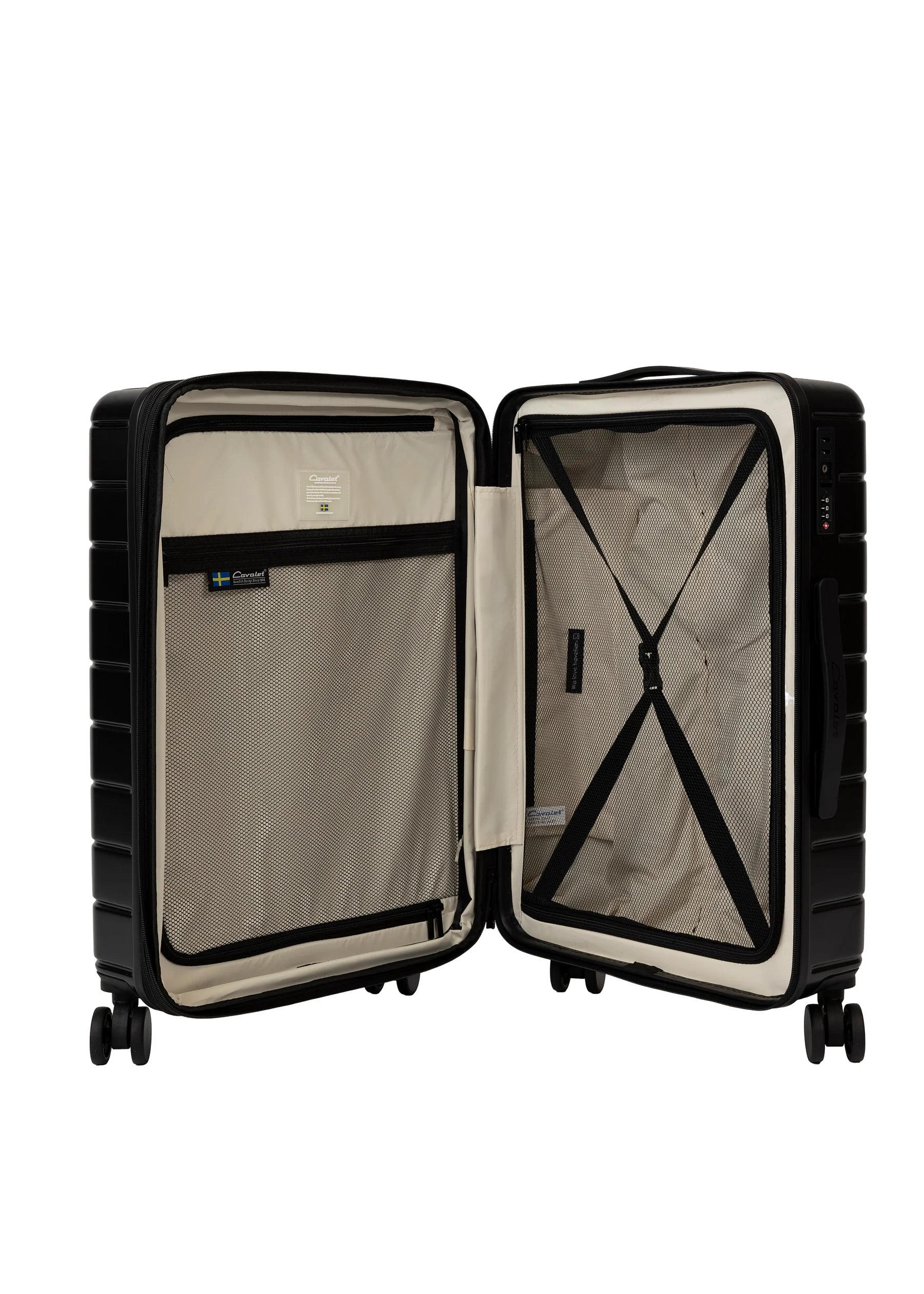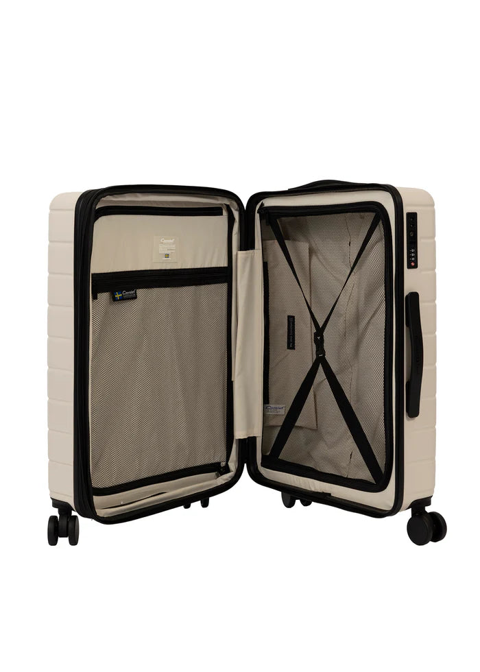 Invändigt är Cavalet Brantevik helfodrade och utrustade med praktiska packband som håller packningen på plats. Den smarta avdelaren gör det enkelt att organisera innehållet och skapar en överskådlig packning i samtliga storlekar. Kombinationen av tre olika volymer gör setet flexibelt och anpassat för både kortare resor, längre semestrar och familjens samlade resebehov. Med genomtänkt interiör, slitstarka material och 10 års fabrikationsgaranti är Brantevik 3-pack ett funktionellt och långsiktigt val.