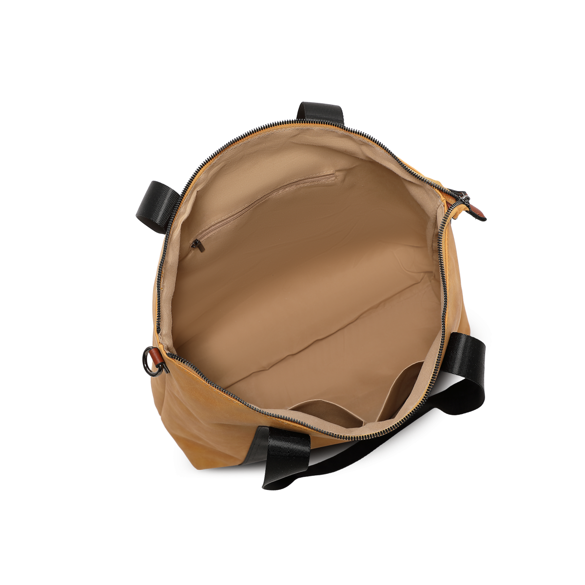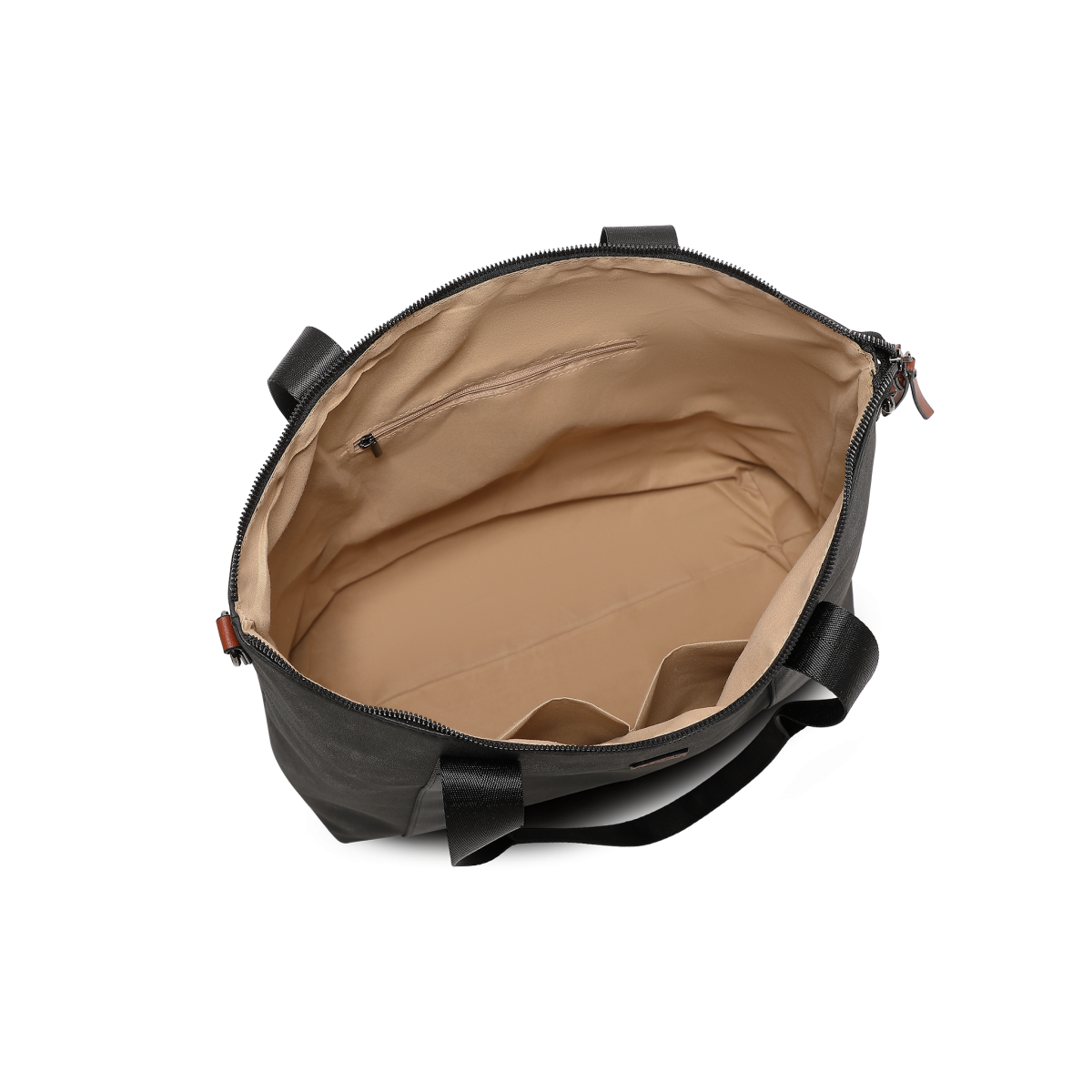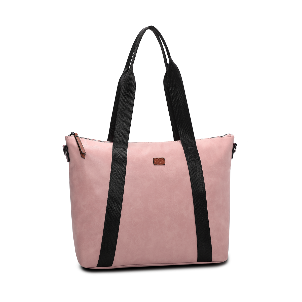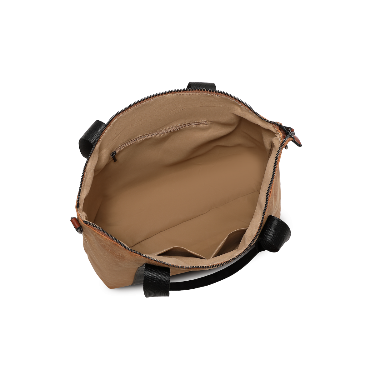 Denna tote-väska erbjuder ett generöst inre utrymme med tre praktiska sidofack, varav ett är utrustat med dragkedja för extra säkerhet. På baksidan finns ett blixtlåsförsett ytterfack, vilket ger enkel åtkomst till viktiga småsaker som nycklar och mobil. Med en avtagbar och justerbar axelrem kan väskan bäras både över axeln och som crossbody, vilket ger flexibel bärkomfort.