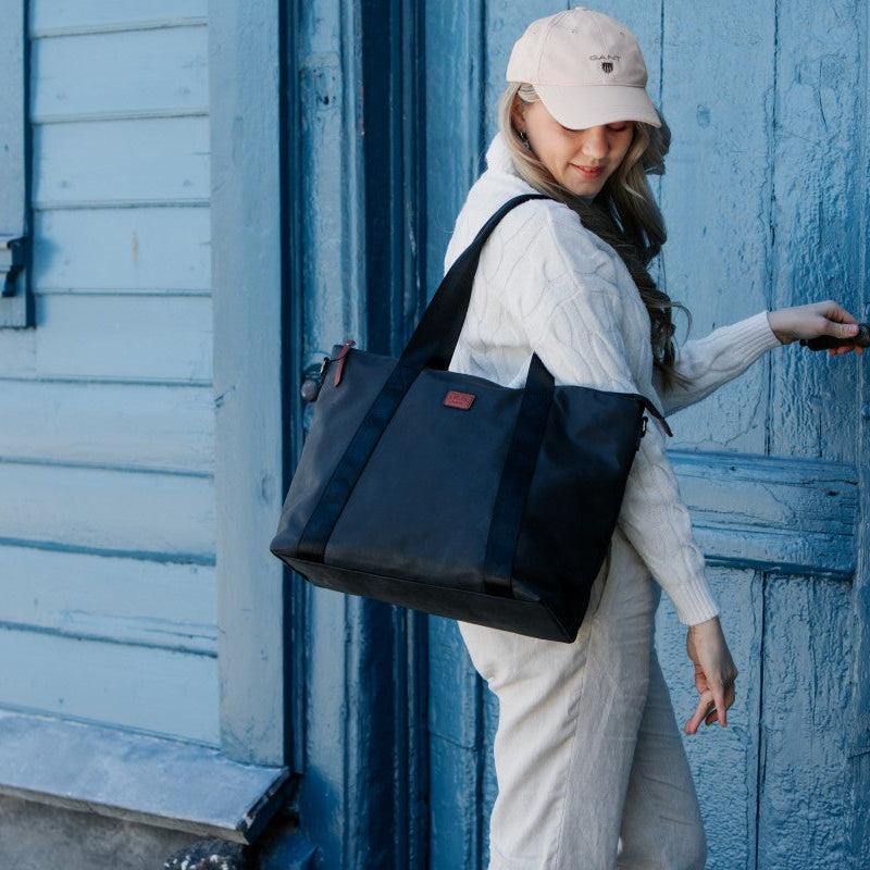 Fynda nuLycke Oslo presenterar en elegant och funktionell tote-väska som är idealisk för både arbete och vardag. Tillverkad i slitstark, veganvänlig skinnimitation, kombinerar denna väska stil med hållbarhet. Den tidlösa designen gör det enkelt att matcha väskan med både jobb- och vardagskläder, vilket gör den till ett mångsidigt val för alla tillfällen.