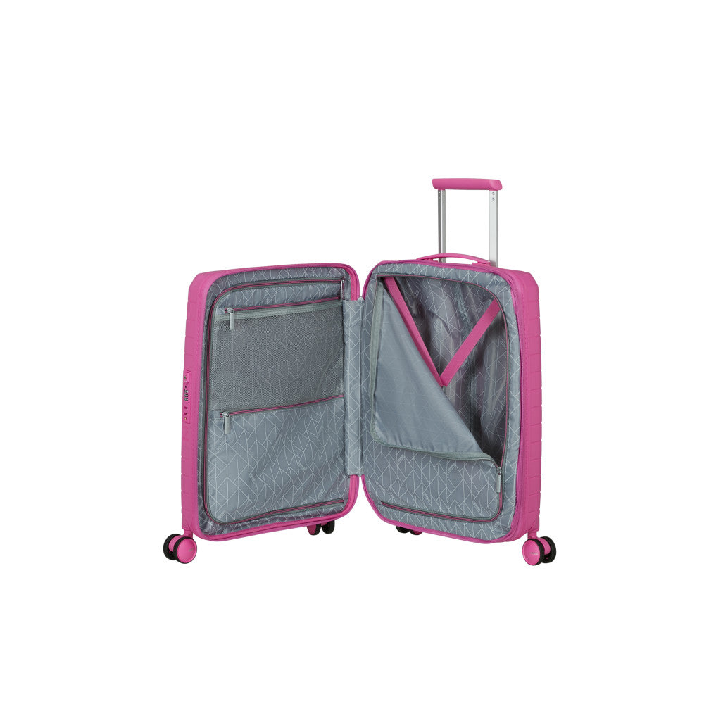 American Tourister Aerospin Spinner Kabinväska är en perfekt kombination av stil och funktionalitet. Tillverkad i 100% polypropylen, erbjuder denna väska ett pålitligt skydd för dina tillhörigheter. Den moderna lila nyansen, Dusk Purple, ger en unik och elegant look som står ut på bagagebandet.