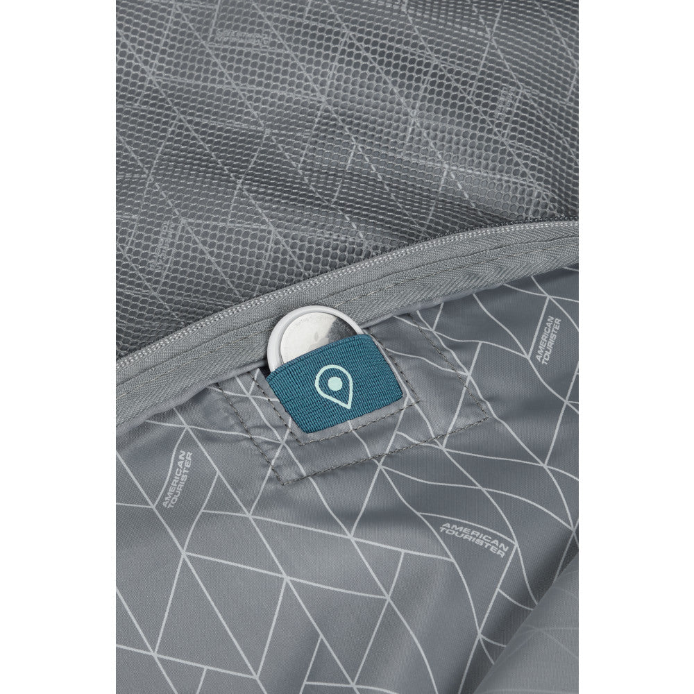 Interiören är smart utformad med ett bottenfack, lock med mellanskiva och en AirTag-ficka. Praktiska packningsband håller dina tillhörigheter på plats, och flera fickor ger struktur och överblick. Innerfodret, liksom expanderingsdelar och dragkedjor, är tillverkade av återvunnen PET-plast, vilket motsvarar tio återvunna plastflaskor.