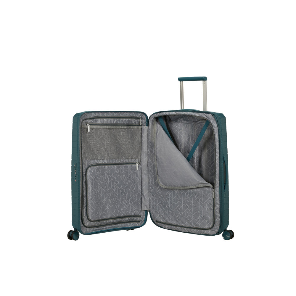 Denna mellanstora resväska från American Tourister kombinerar en stilren design med hög funktionalitet. Det hårda skalet är tillverkat av slitstark polypropylen, vilket effektivt skyddar innehållet under resan. Den expanderbara designen ger extra flexibilitet när du behöver mer packutrymme, vilket gör den idealisk för både kortare och längre resor.