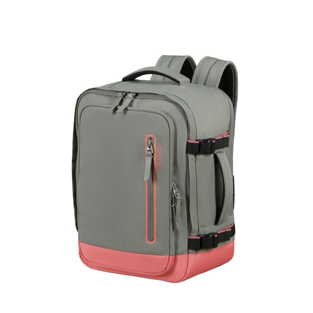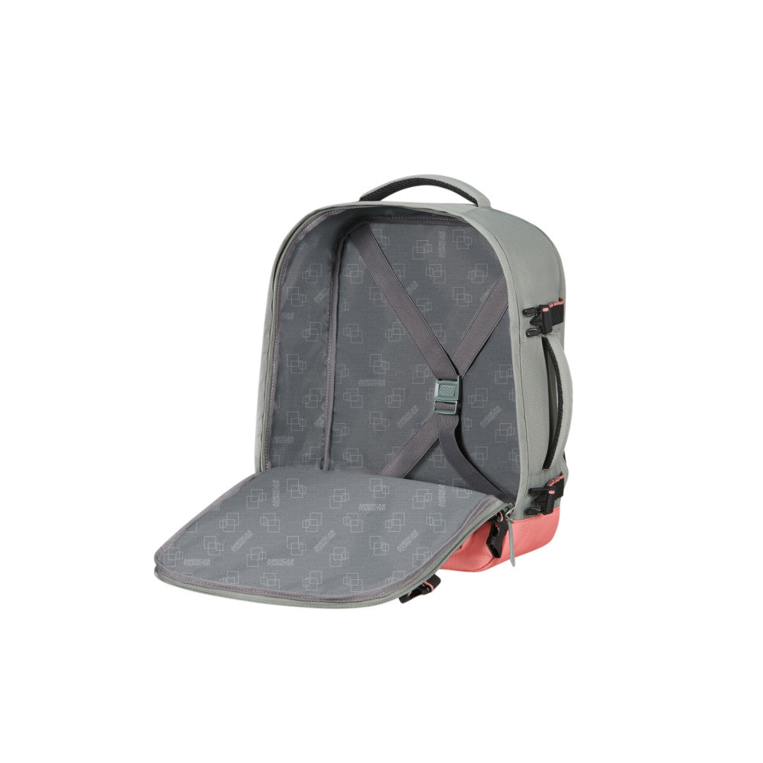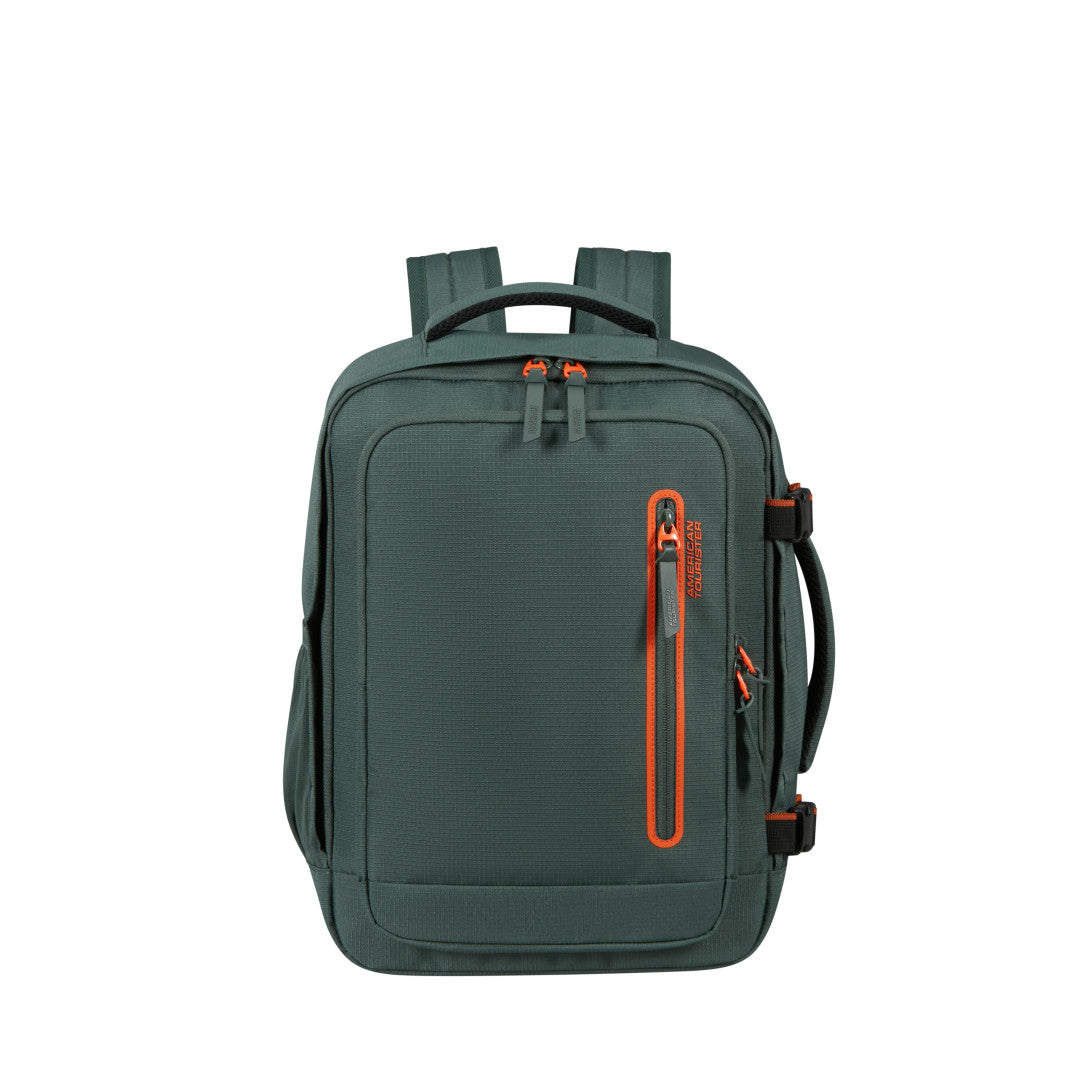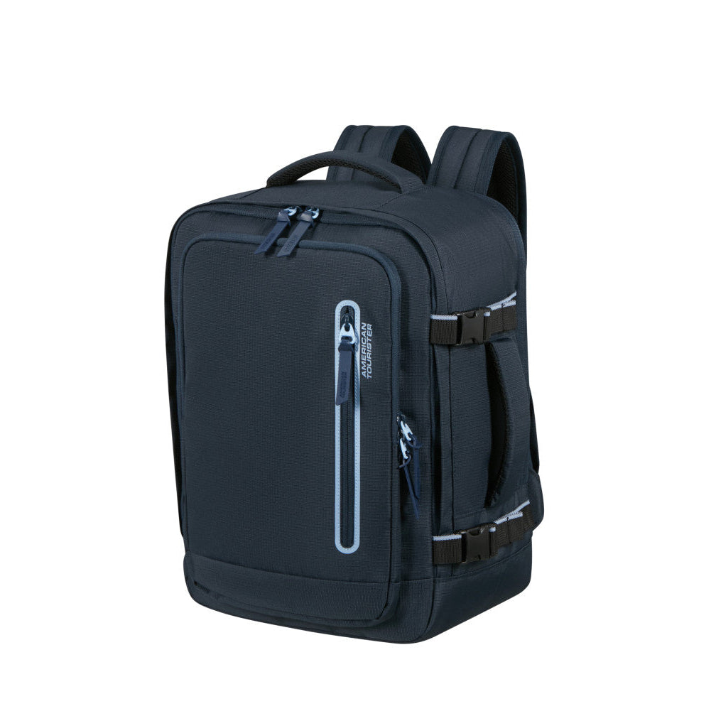 American Tourister Take2Cabin Sport är en ryggsäck utformad för att fungera som smidigt handbagage samtidigt som den erbjuder struktur och flexibilitet för både resor och vardag. Den kompakta designen håller måtten för de flesta flygbolags kabinkrav och den stående formen gör väskan enkel att packa och hantera. Utsidan är utrustad med flera dragkedjeförsedda fack, inklusive en vertikal frontficka för snabb åtkomst till mindre tillhörigheter. Den slitstarka materialkonstruktionen gör modellen tålig nog för både pendling och resor.