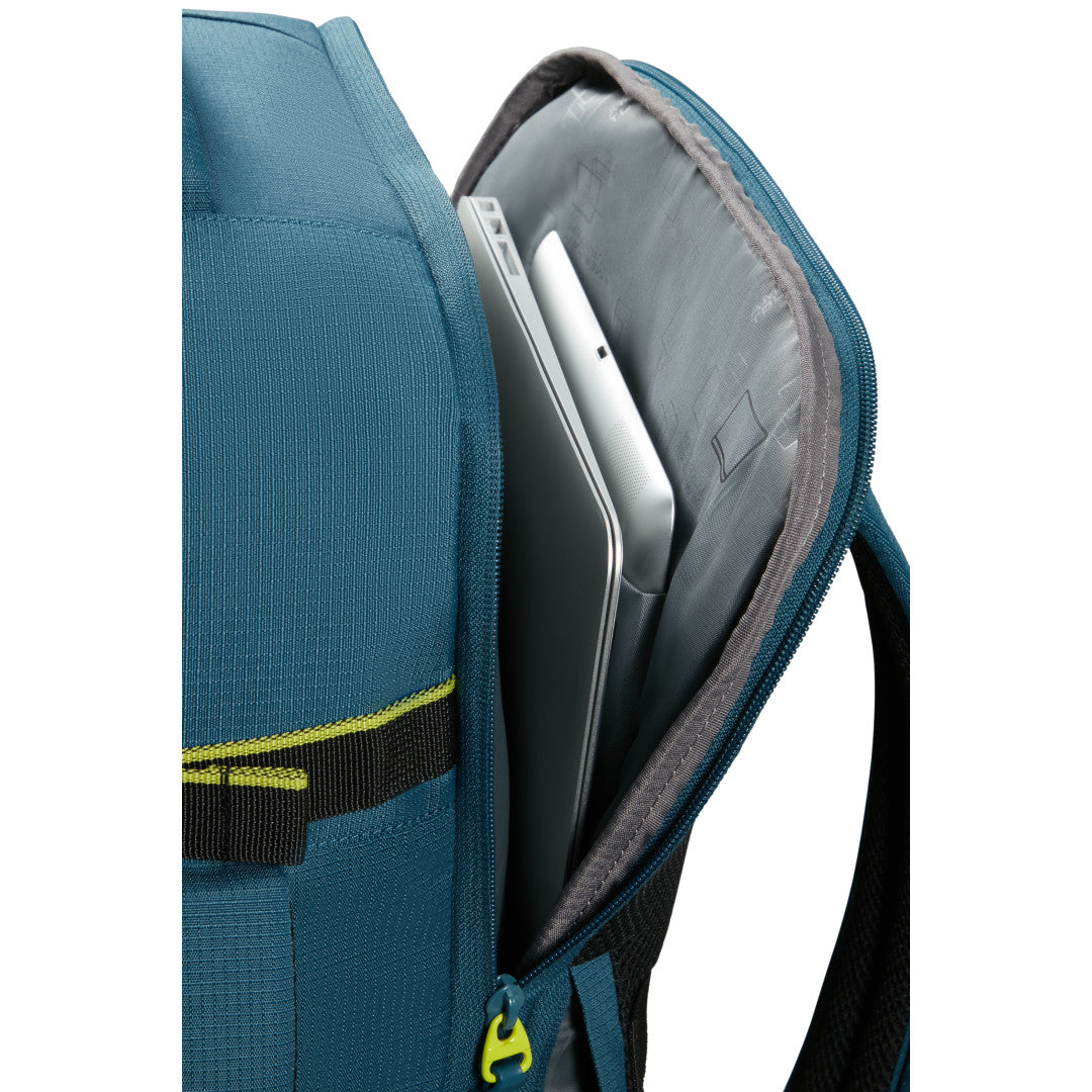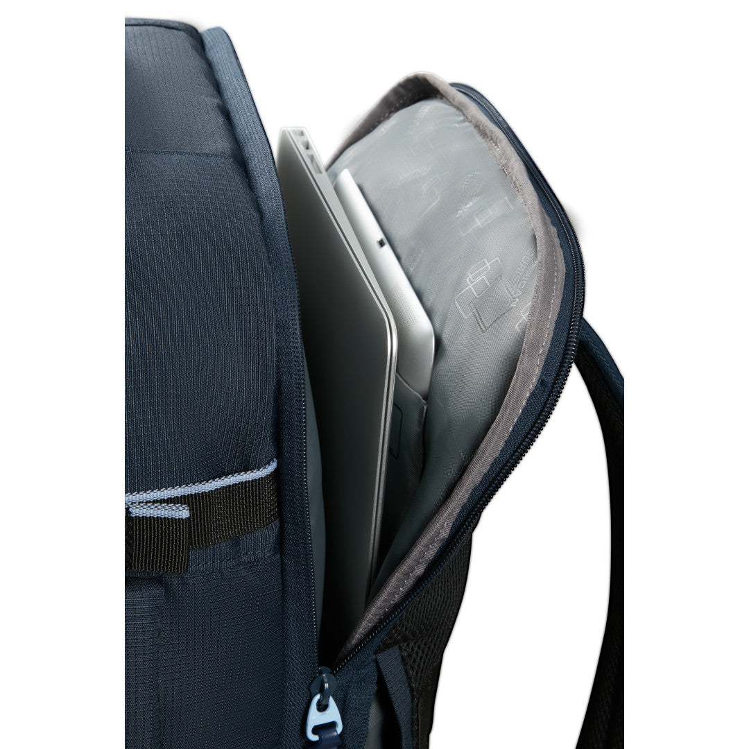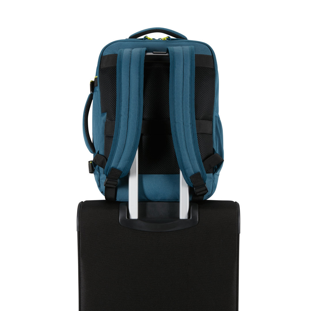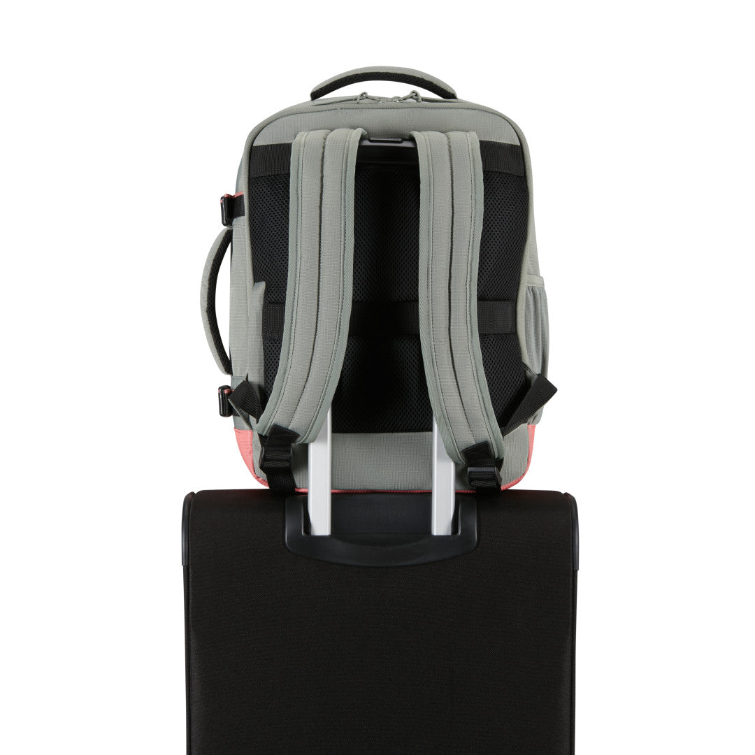 American Tourister Take2Cabin Sport är en ryggsäck utformad för att fungera som smidigt handbagage samtidigt som den erbjuder struktur och flexibilitet för både resor och vardag. Den kompakta designen håller måtten för de flesta flygbolags kabinkrav och den stående formen gör väskan enkel att packa och hantera. Utsidan är utrustad med flera dragkedjeförsedda fack, inklusive en vertikal frontficka för snabb åtkomst till mindre tillhörigheter. Den slitstarka materialkonstruktionen gör modellen tålig nog för både pendling och resor.