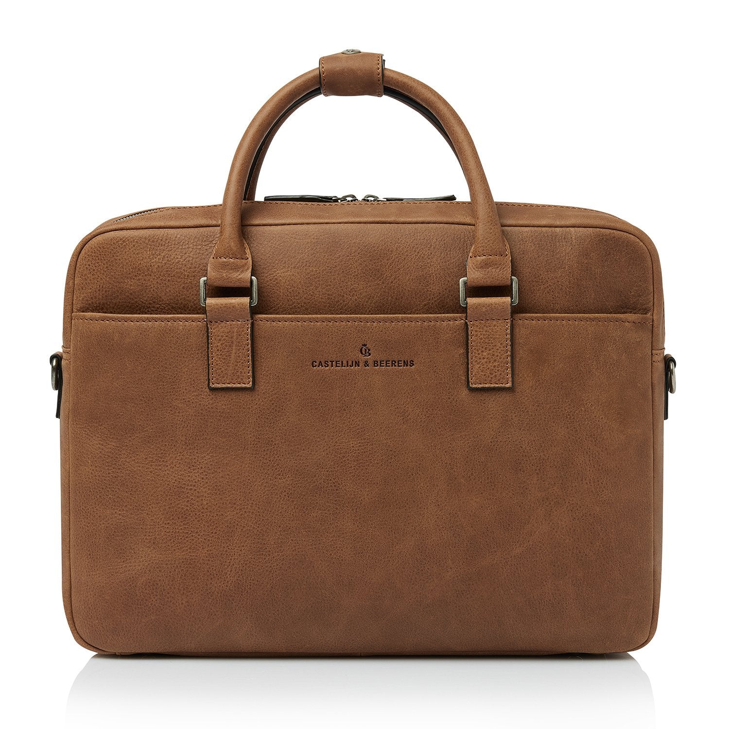 Castelijn & Beerens Carisma är en sofistikerad datorväska i italienskt läder, framtagen för den moderna yrkespersonen som uppskattar diskret elegans. Den tillhör Carisma-kollektionen, där enkelhet och kvalitet möts i en stilren design. Det naturliga narvade lädret ger väskan ett robust men elegant uttryck som åldras vackert med tiden.