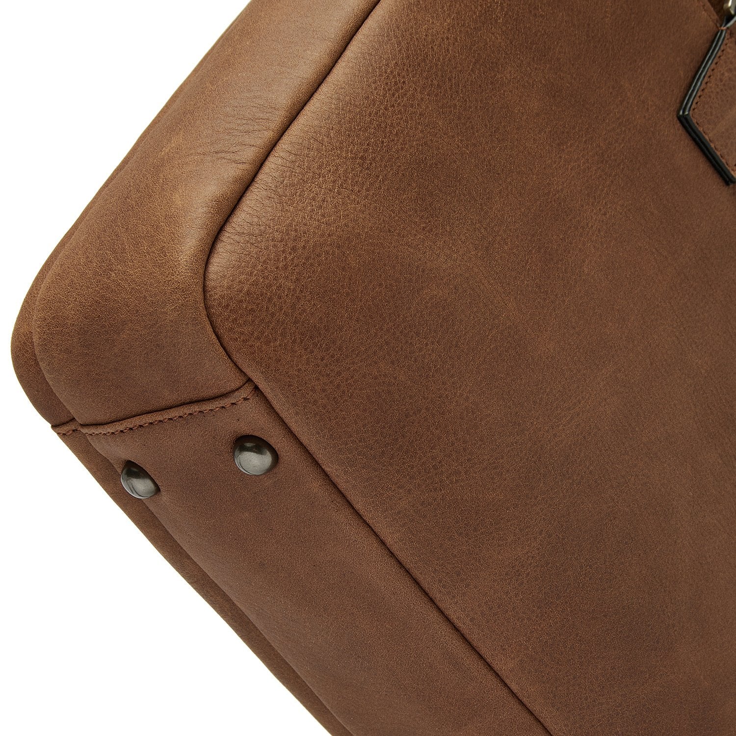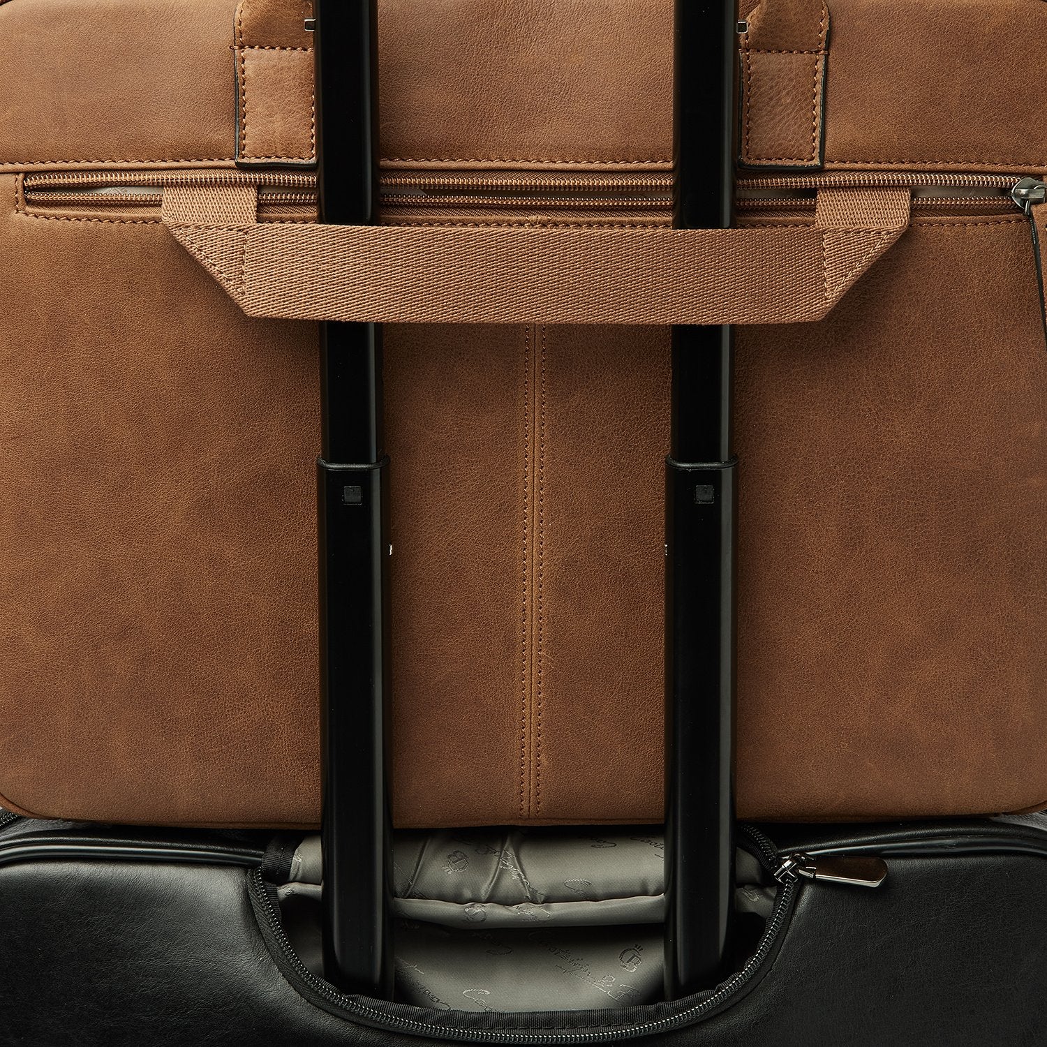 Carisma-datorväskan har ett avtagbart och justerbart axelband i läder som ger flexibel bärkomfort. Den kan enkelt bäras i handen med de stabila handtagen eller fästas på en resväska via det integrerade trolleyfästet – perfekt för affärsresor. Med en vikt på endast 1,2 kg är väskan lätt men ändå stabil.