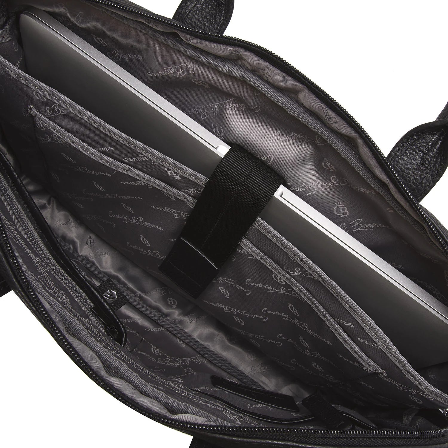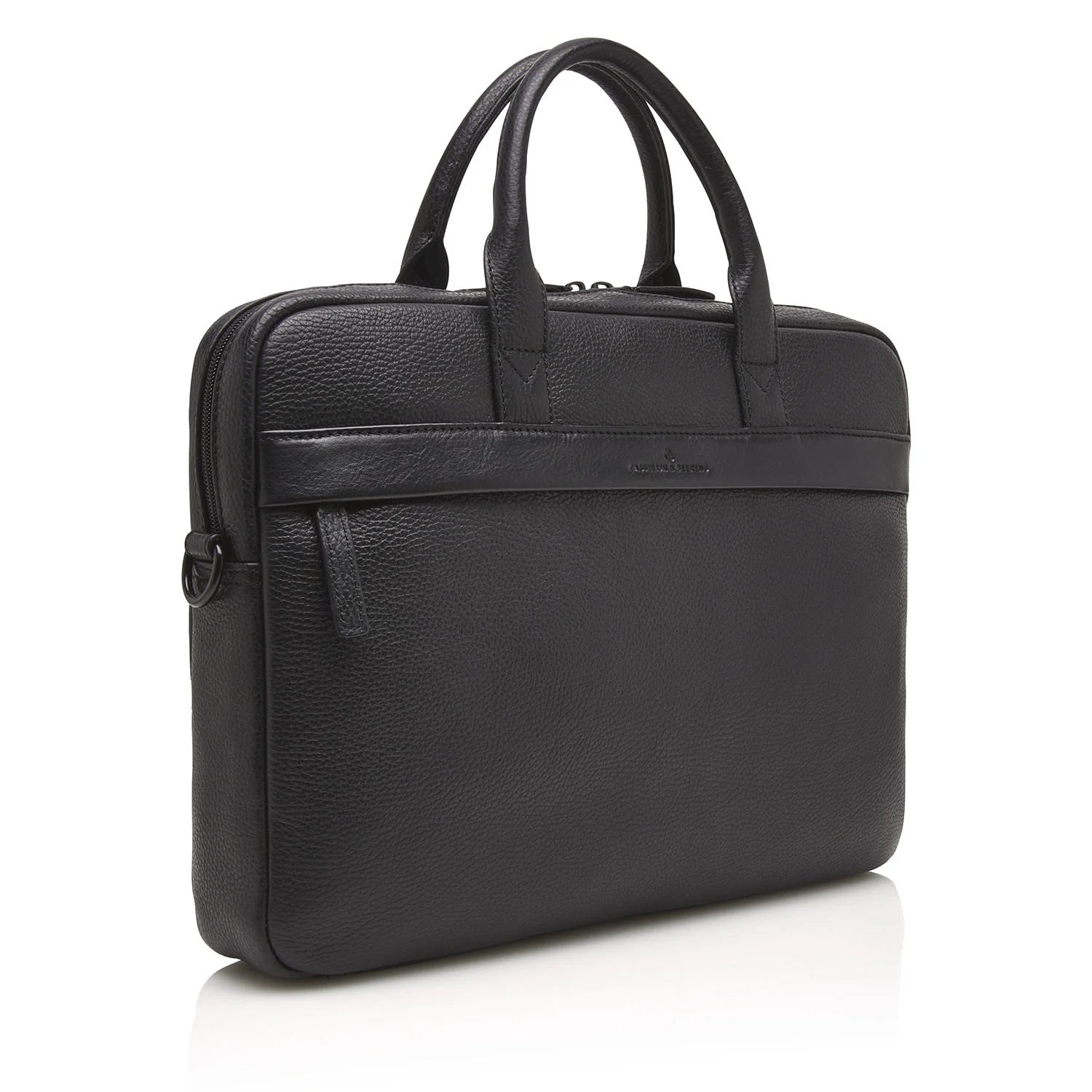 Castelijn & Beerens Chris är en exklusiv datorportfölj i läder, framtagen för den medvetna professionella användaren. Väskan ingår i den sofistikerade Onyx-kollektionen, känd för sin eleganta kombination av narvat läder och en horisontell slät läderremsa med det präglade C&B-emblemet. Den svarta nyansen och de noggrant utvalda materialen ger ett tidlöst uttryck som passar lika bra på kontoret som under affärsresan.