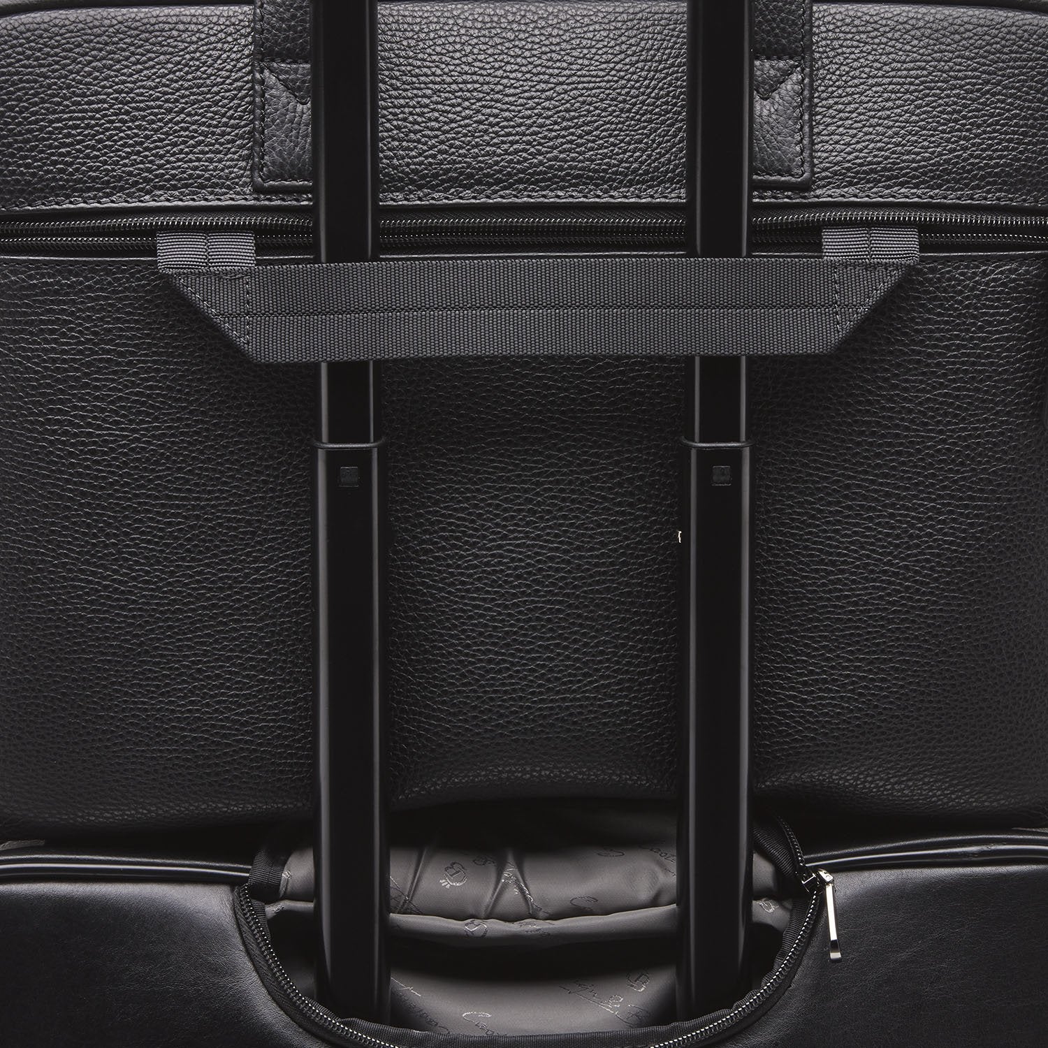 De robusta handtagen och den justerbara, avtagbara axelremmen gör väskan bekväm att bära både i handen och över axeln. En integrerad trolley-strap på baksidan gör det enkelt att fästa väskan på en resväska vid längre resor. Med sin kompakta form och välbalanserade vikt på 1,55 kg är Chris-portföljen både lätt och stabil att bära med sig.