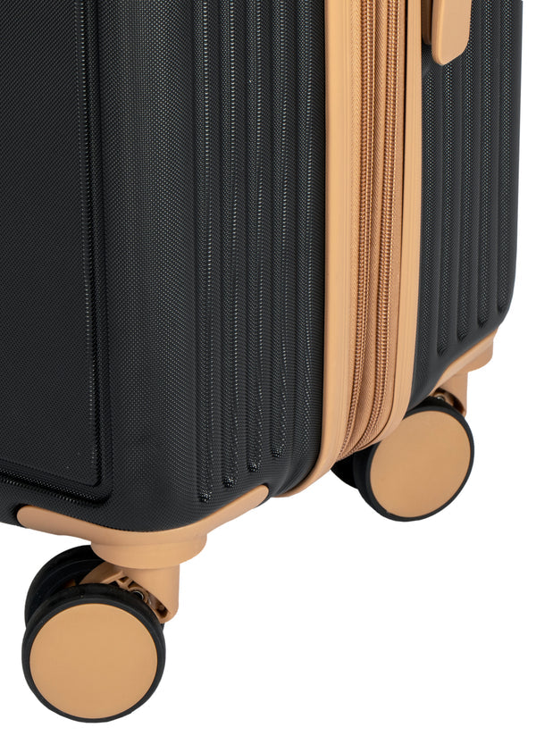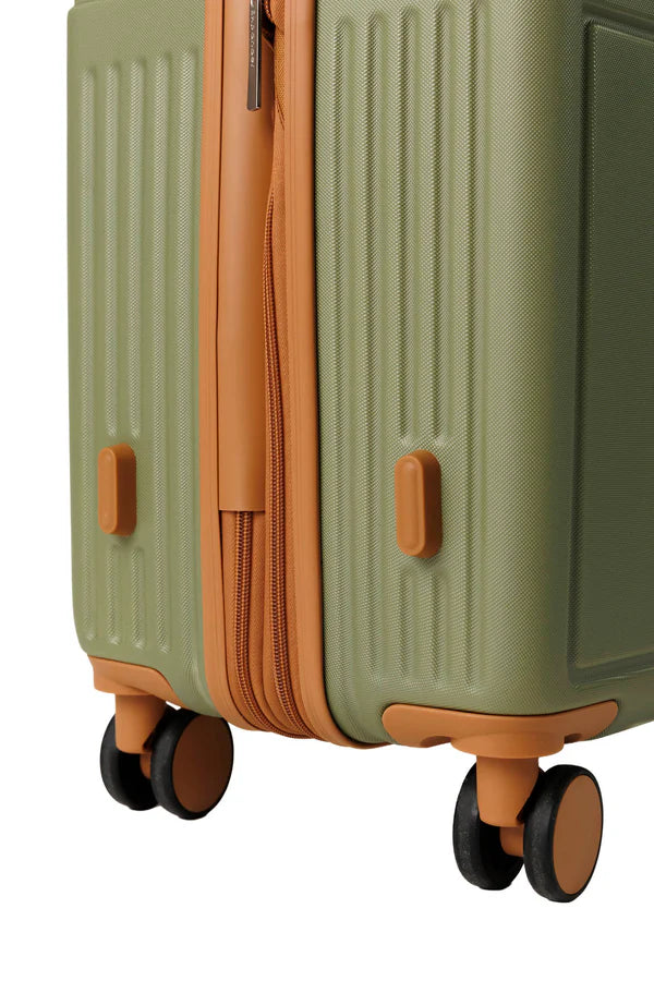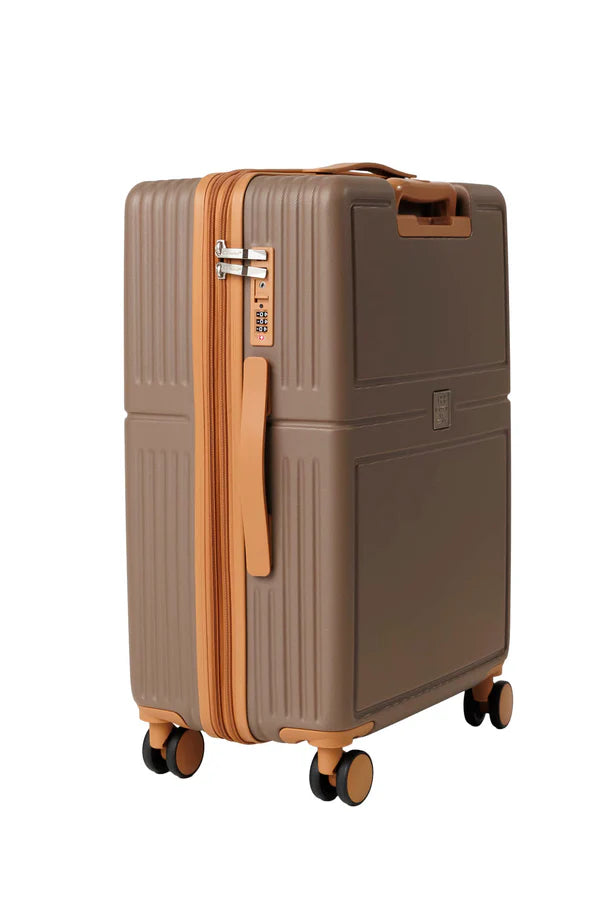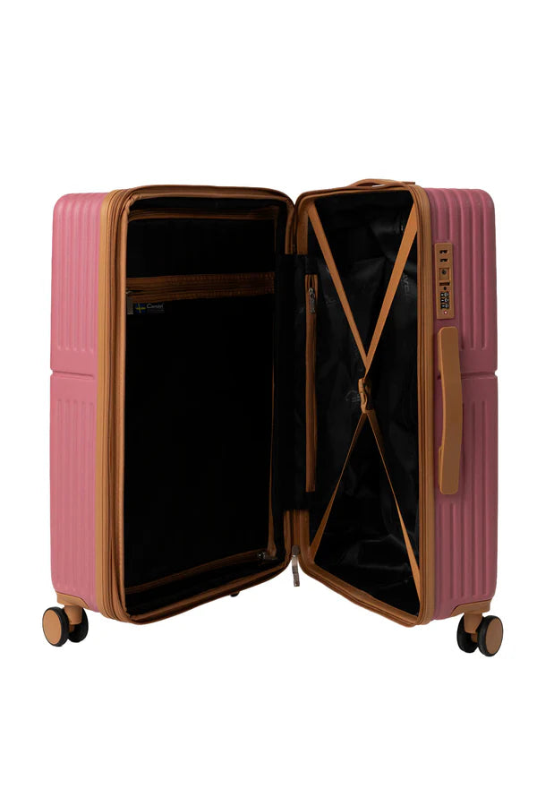 Fynda nuCavalet Dalby 65cm är en elegant resväska som kombinerar retroinspirerad design med moderna funktioner. Den rena siluetten och mjuka färgpaletten ger väskan en tidlös look, samtidigt som det hårda ABS-materialet gör den tålig och slitstark. Fyra dubbelhjul säkerställer smidig och stabil rullning i alla riktningar, vilket gör resandet bekvämt och flexibelt.