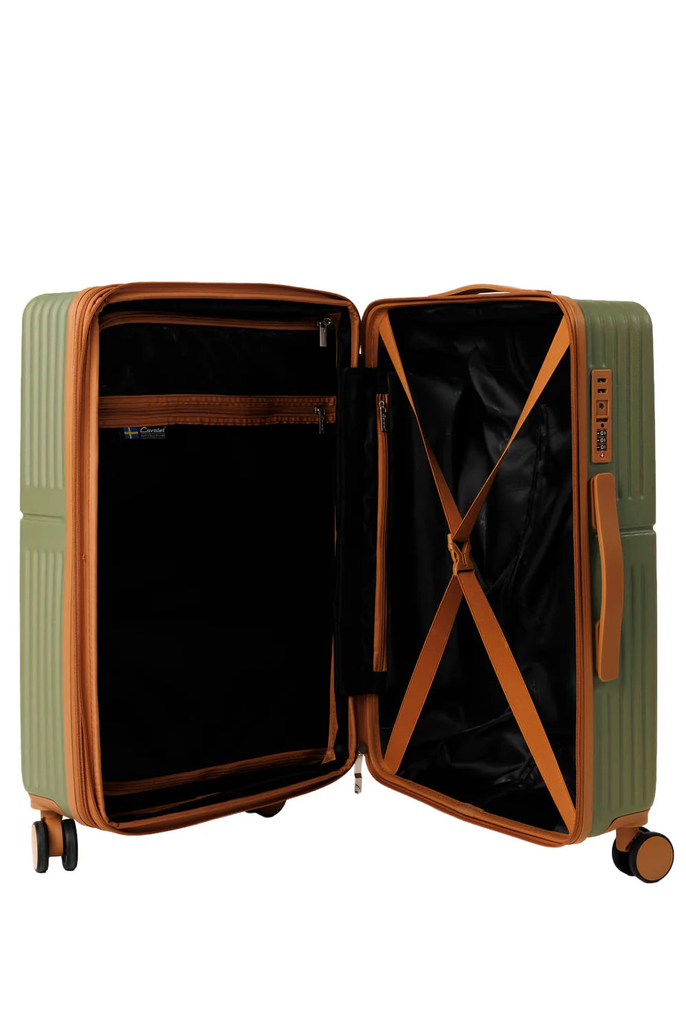 Insidan är genomtänkt för att underlätta packningen. Väskan har smarta avdelare och elastiska packband som håller kläder och tillhörigheter på plats under hela resan. Denna struktur gör det enkelt att organisera bagaget på ett överskådligt sätt och minskar risken för skrynkliga kläder.