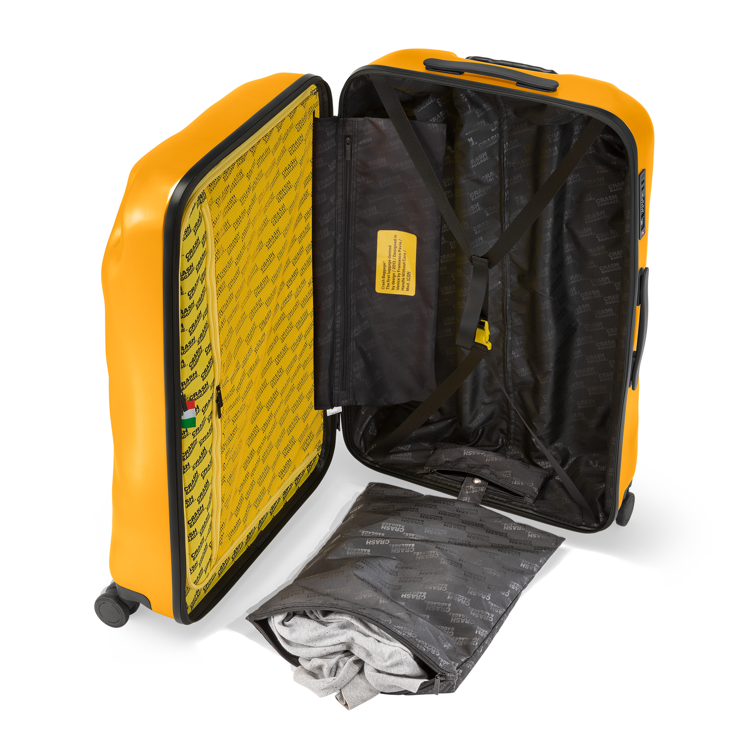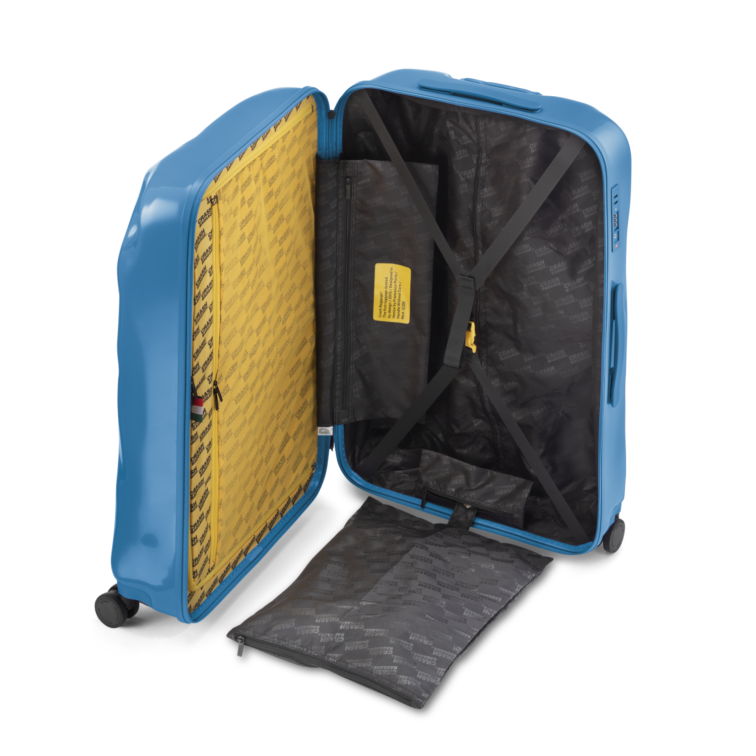 Denna resväska från Crash Baggage utmärker sig genom sin unika design med inbyggda bucklor, vilket speglar varumärkets rebelliska anda. Det runda skalet är tillverkat av 100 % polykarbonat, vilket gör väskan både hållbar och lätt. Denna kombination av funktion och karaktär gör den till ett utmärkt val för frekventa resenärer.