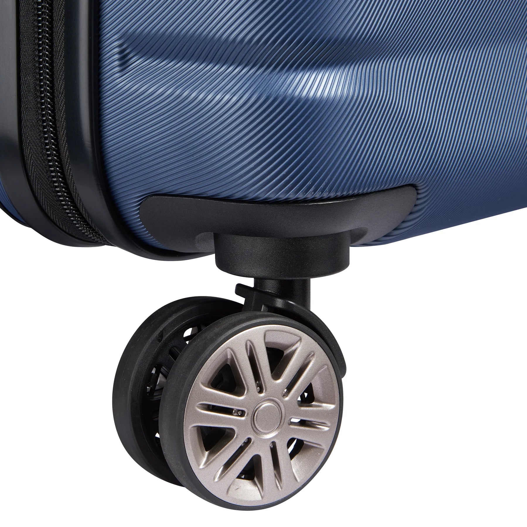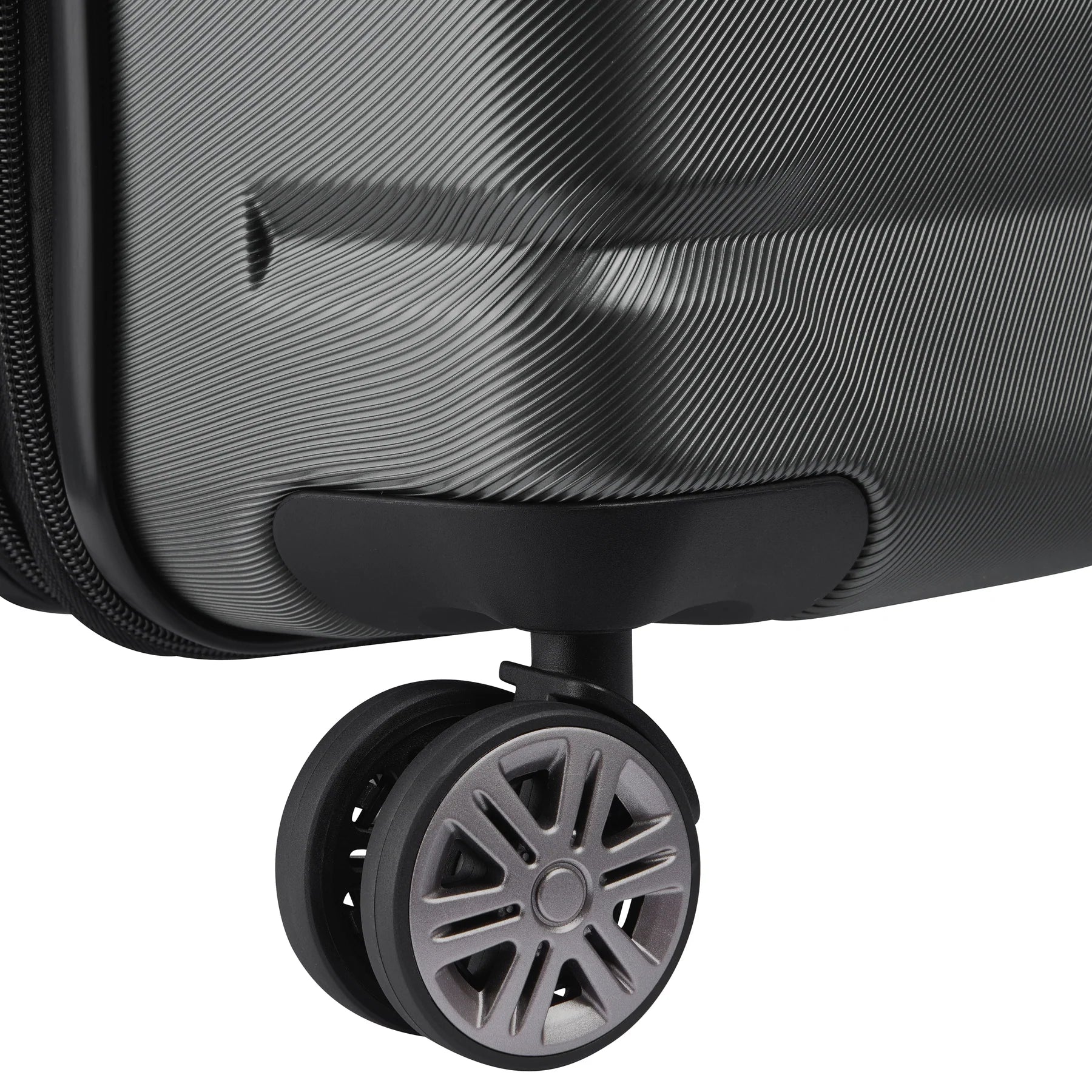 Väskan har fyra dubbla hjul som rullar tyst och stabilt, vilket gör den lätt att styra oavsett underlag. Det flerstegade teleskophandtaget och de bekväma topp- och sidhandtagen underlättar lyft och förflyttning. Den balanserade konstruktionen gör att väskan känns lätt att hantera även när den är fullpackad.