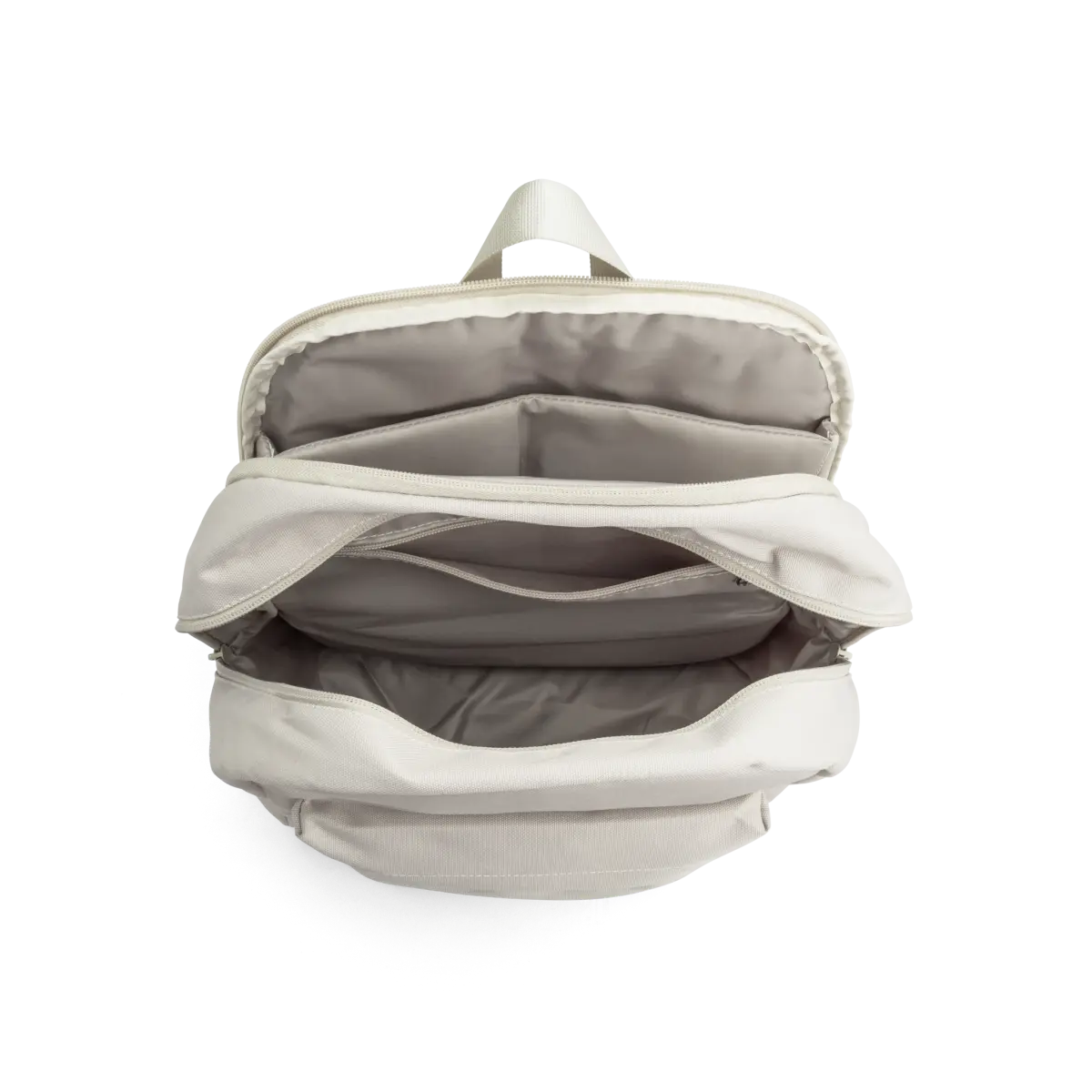 Ryggsäcken är utformad med ergonomi i fokus. De vadderade, 7 cm breda axelremmarna är fullt justerbara för optimal passform, medan ryggpanelen är både ventilerad och vadderad för att ge extra stöd och minska värmeutveckling. På baksidan finns ett praktiskt textilband som gör att du enkelt kan fästa ryggsäcken på en resväskas teleskophandtag – perfekt vid flygresa eller pendling. Det övre handtaget gör den enkel att bära även i handen vid kortare transporter.