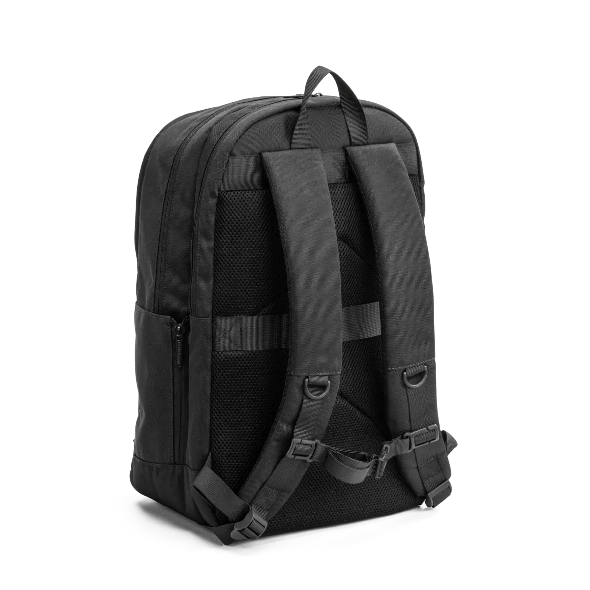 Escape Ryggsäck 28L är skapad för att sitta bekvämt även under längre dagar. Axelremmarna är vadderade, 6,5 cm breda och justerbara för optimal passform. Ryggpanelen är ventilerad och väl vadderad för att minska belastning och värme. Dessutom har väskan ett avtagbart bröstband som ger extra stabilitet vid tyngre packning. Tack vare textilbandet på baksidan kan du enkelt fästa väskan på en resväskas teleskophandtag – perfekt vid längre resor eller pendling.