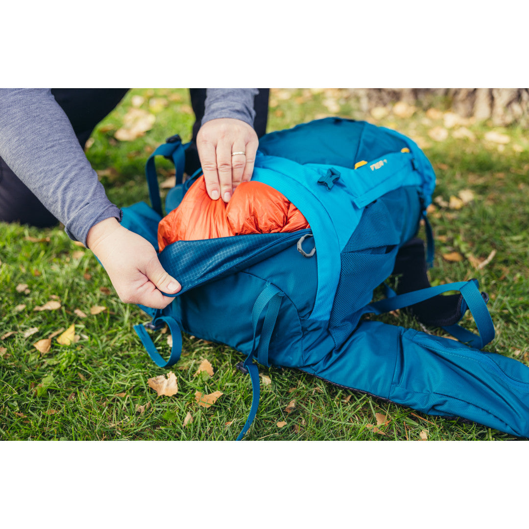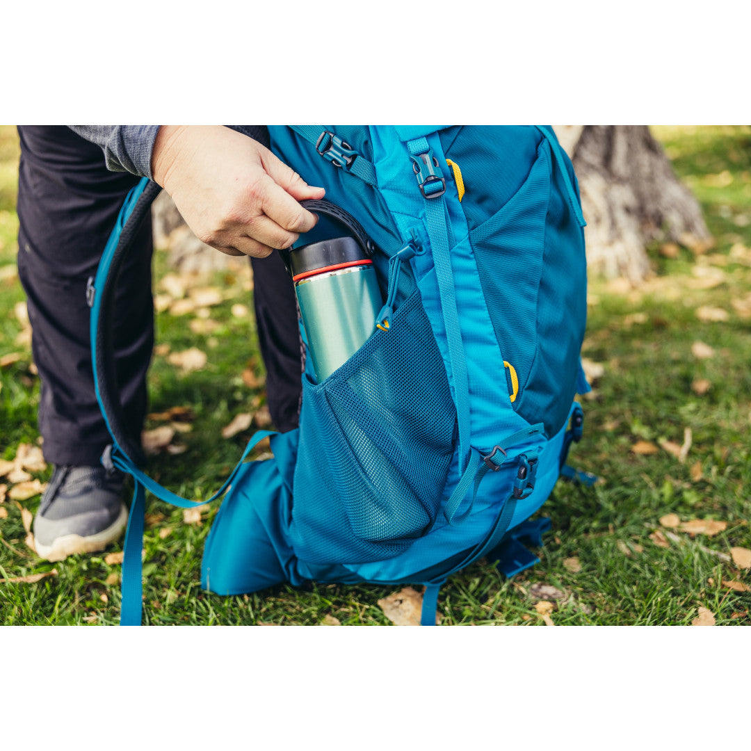 Amber 44 har flera lättåtkomliga fack och fickor, inklusive ett fack för sovsäck och en vätskeficka kompatibel med Gregory Hydro-behållare. Dess slitstarka nätfickor och förstärkta bottenpanel gör den hållbar och pålitlig för alla äventyr. Den är också utrustad med fästpunkter för vandringsstavar, vilket gör den till en idealisk följeslagare på leden.