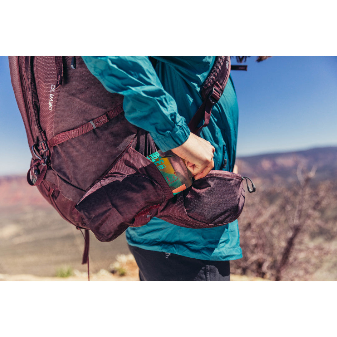 Med Gregory Deva 70 får du en ryggsäck med smart organisation och enkel åtkomst till dina tillhörigheter. Den stora U-formade frontöppningen ger snabb åtkomst till huvudfacket, medan flera fickor, inklusive stretchfickor och sovsäcksfack, erbjuder rikligt med förvaringsmöjligheter. Funktioner som SideWinder-flaskhållare och stora höftbältesfickor ökar ryggsäckens funktionalitet ytterligare.