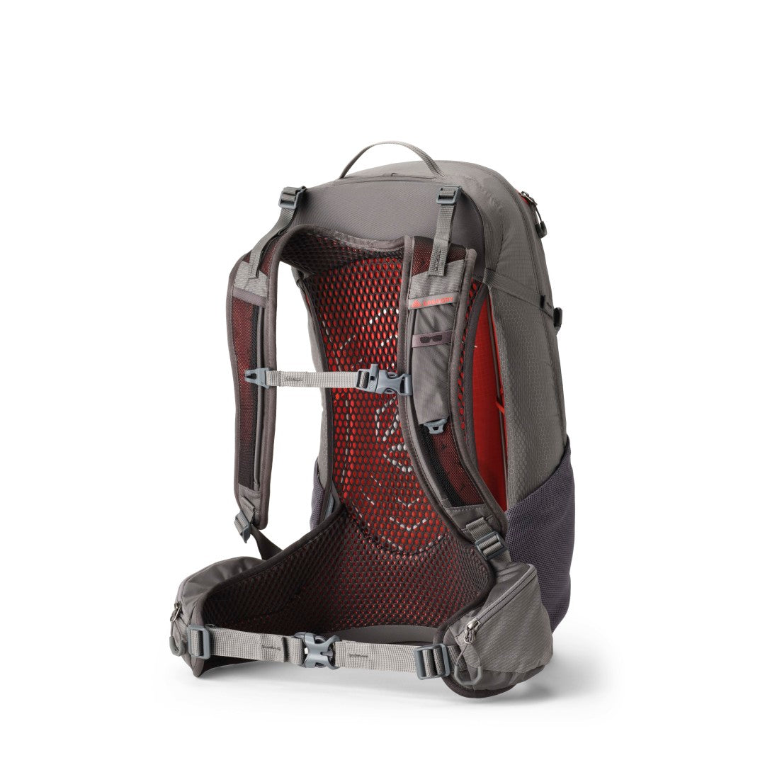 Juno 24 har ett QuickStow-system på axelselen för säker förvaring av solglasögon. Den är även kompatibel med Gregorys 3D Hydro-behållare tack vare SpeedClip vätskeupphängning. Främre stretchfickor och dubbla sidofickor i nät erbjuder snabb och enkel förvaring av extra utrustning.
