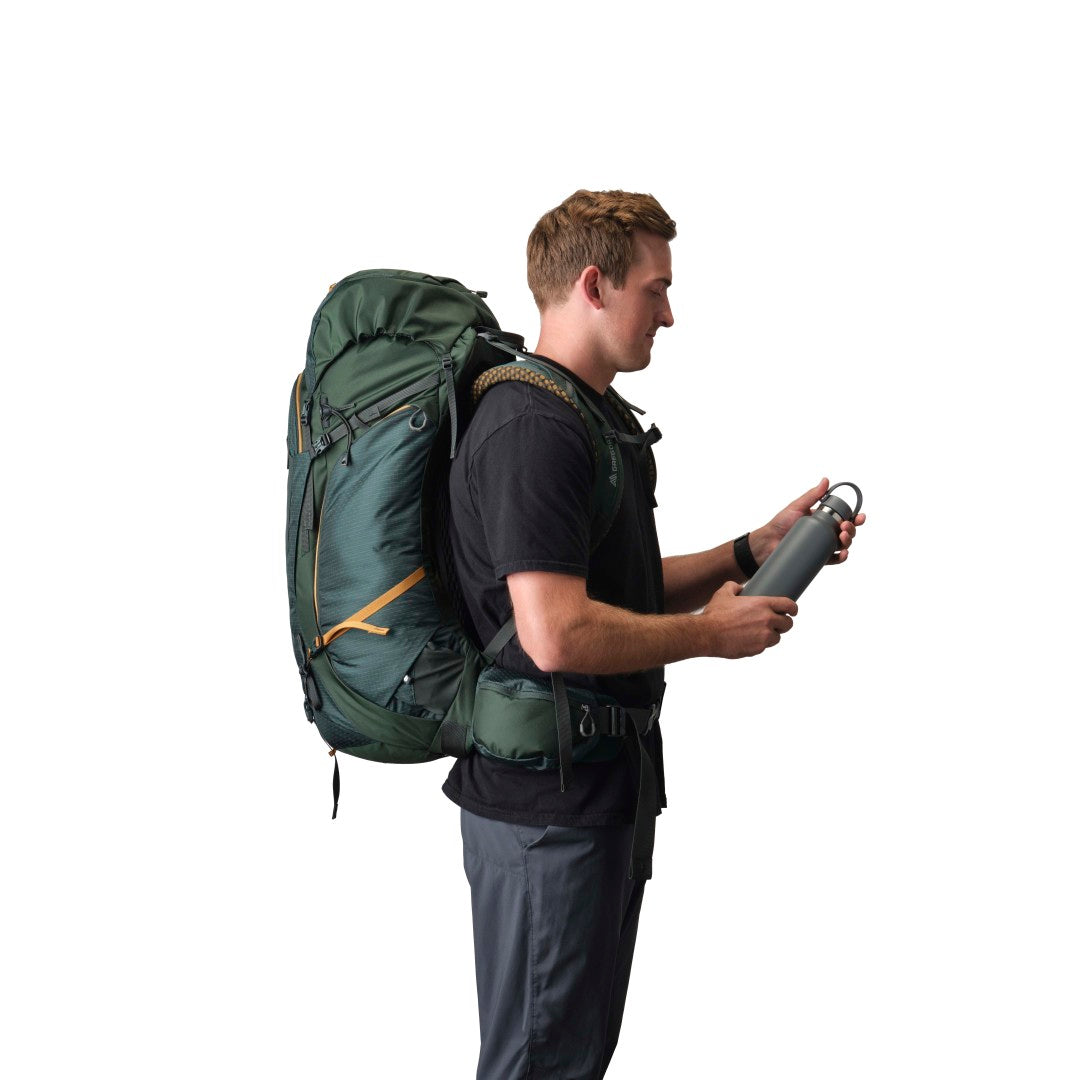 Katmai 65 är byggd med tillgång i åtanke: ett helsidigt sidoblixtlås ger snabb åtkomst till huvudfacket, och ett separat sovsäcksutrymme med avdelare underlättar packningen. Det rymliga frontfacket har meshavdelare för struktur, medan topplocket erbjuder flera blixtlåsförsedda fack för småsaker. Den invändiga vätskeblåsfickan är kompatibel med Gregorys 3D Hydro Trek Reservoir. Stretchfickor på sidorna, flaskhållare med enhandsåtkomst och stor frontficka gör packningen både effektiv och lättillgänglig.
