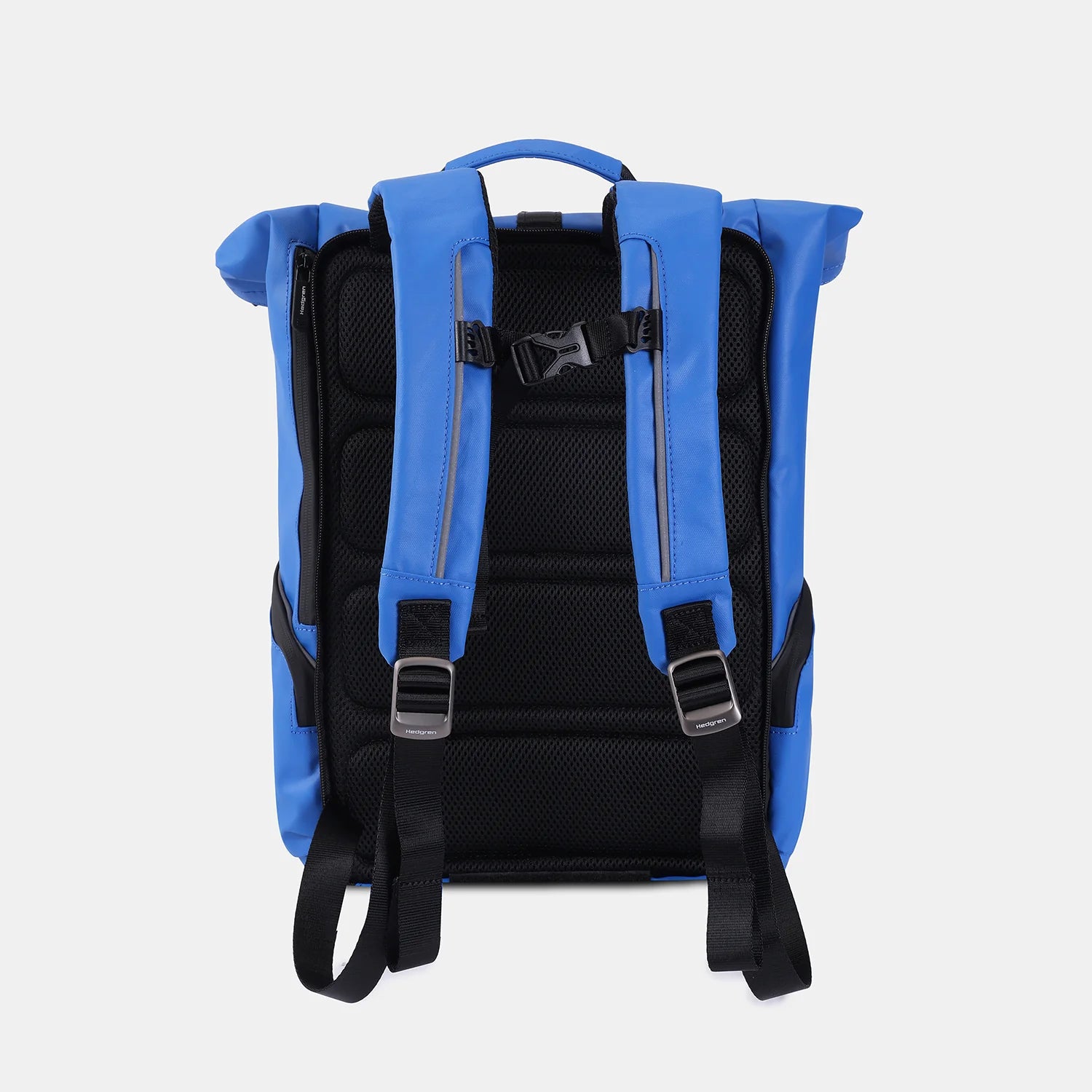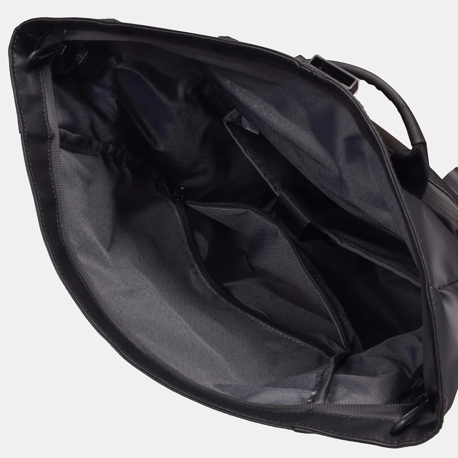 Insidan av ryggsäcken är välorganiserad med ett låsbart huvudfack som inkluderar ett RFID-skyddat område för kort och pass, vilket skyddar mot elektronisk stöld. Väskan har även en invändig dragkedjeficka, två öppna fickor och en nyckelhållare. Formatet är anpassat för A4-dokument, vilket gör den perfekt för både jobb och studier.