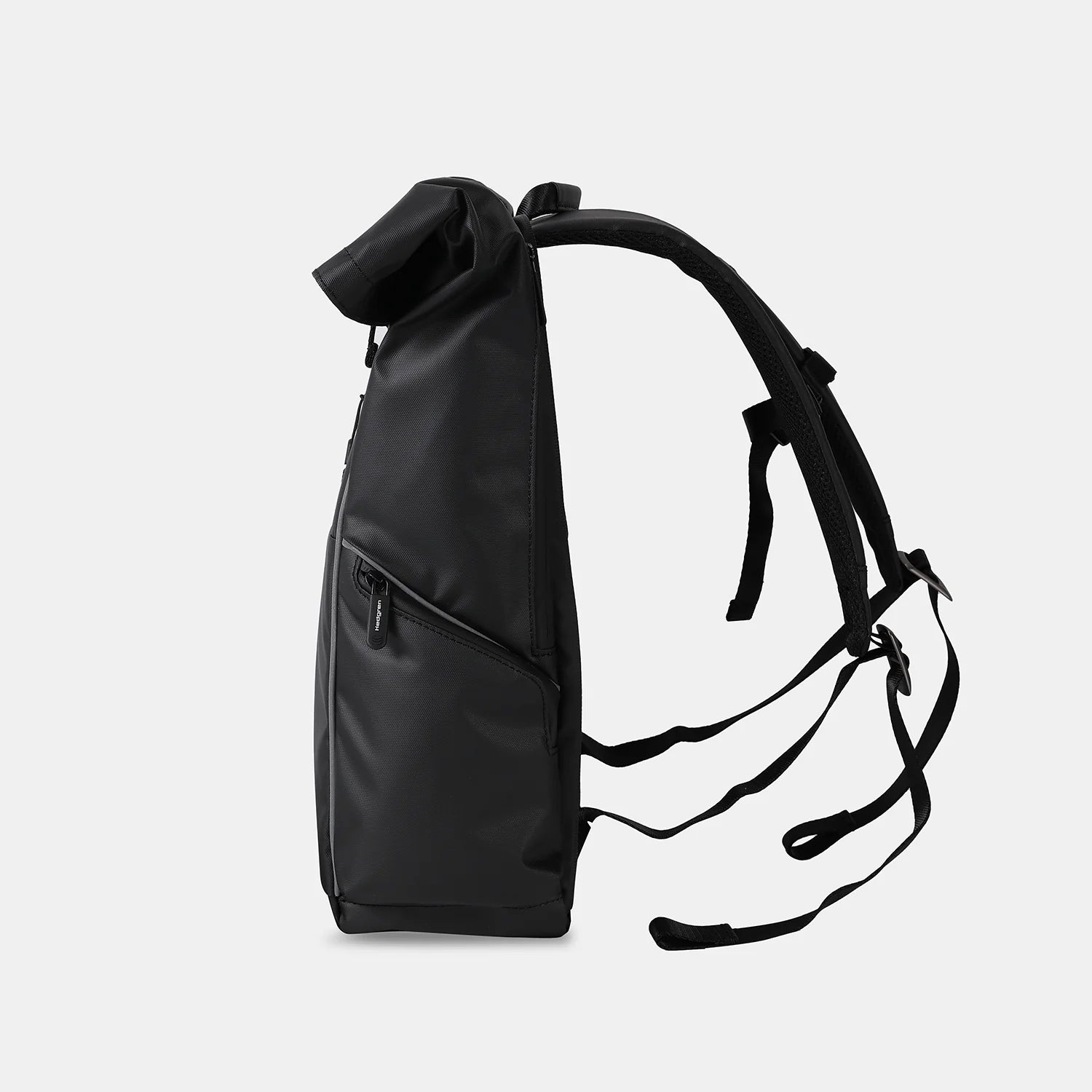Denna ryggsäck från Chain-serien erbjuder en kombination av praktisk innovation och en stilren, hållbar design. Med en vattenavvisande yta, inklusive dragkedjor, är den idealisk för både stadsliv och cykelpendling. Ryggsäcken har reflekterande detaljer för ökad synlighet och ett smidigt fästsystem för enkel montering på cykelstyret. Tre utvändiga fickor ger snabb åtkomst, och ett rymligt huvudfack kan expanderas vid behov. Tillverkad av återvunna plastflaskor, är detta en av våra mest hållbara kollektioner.