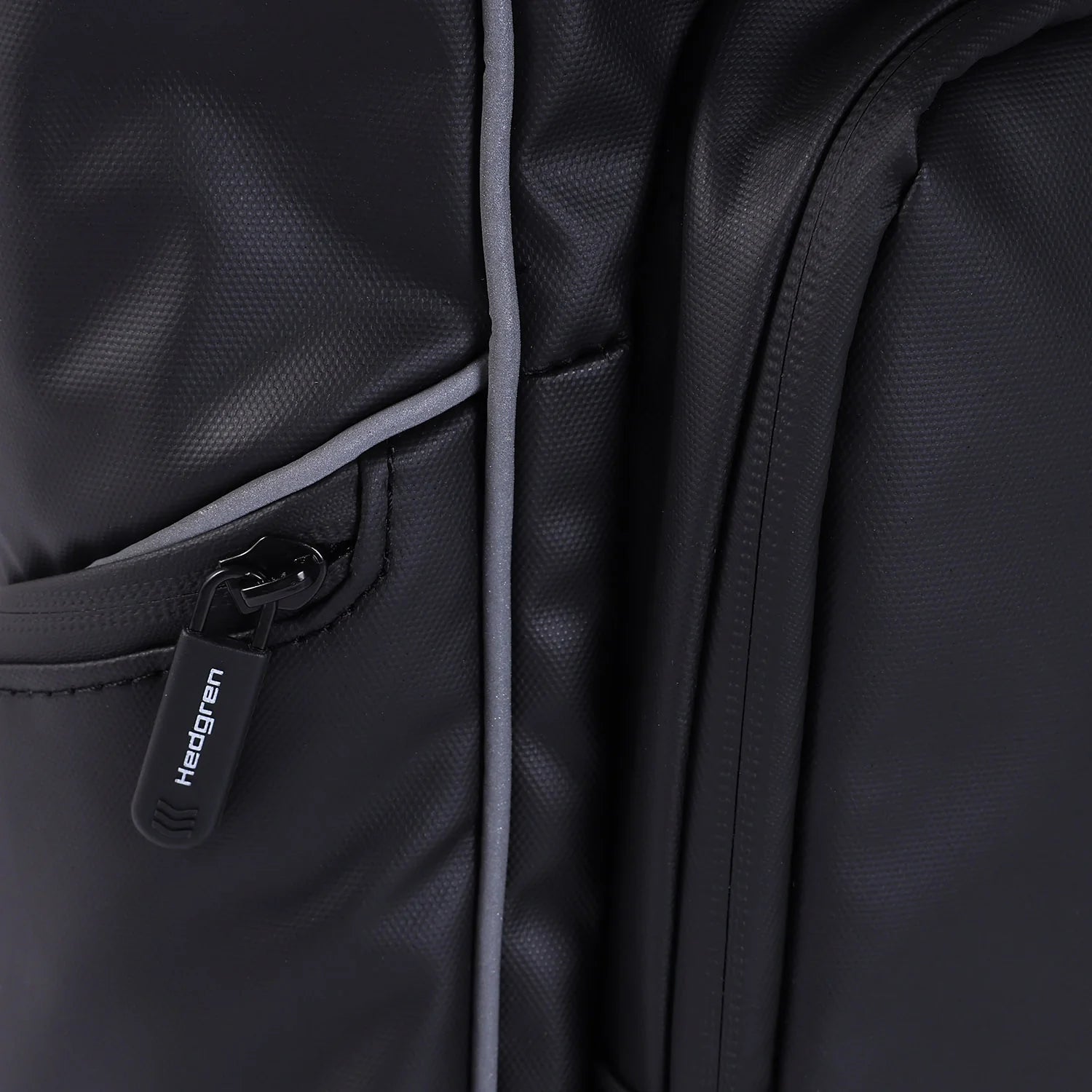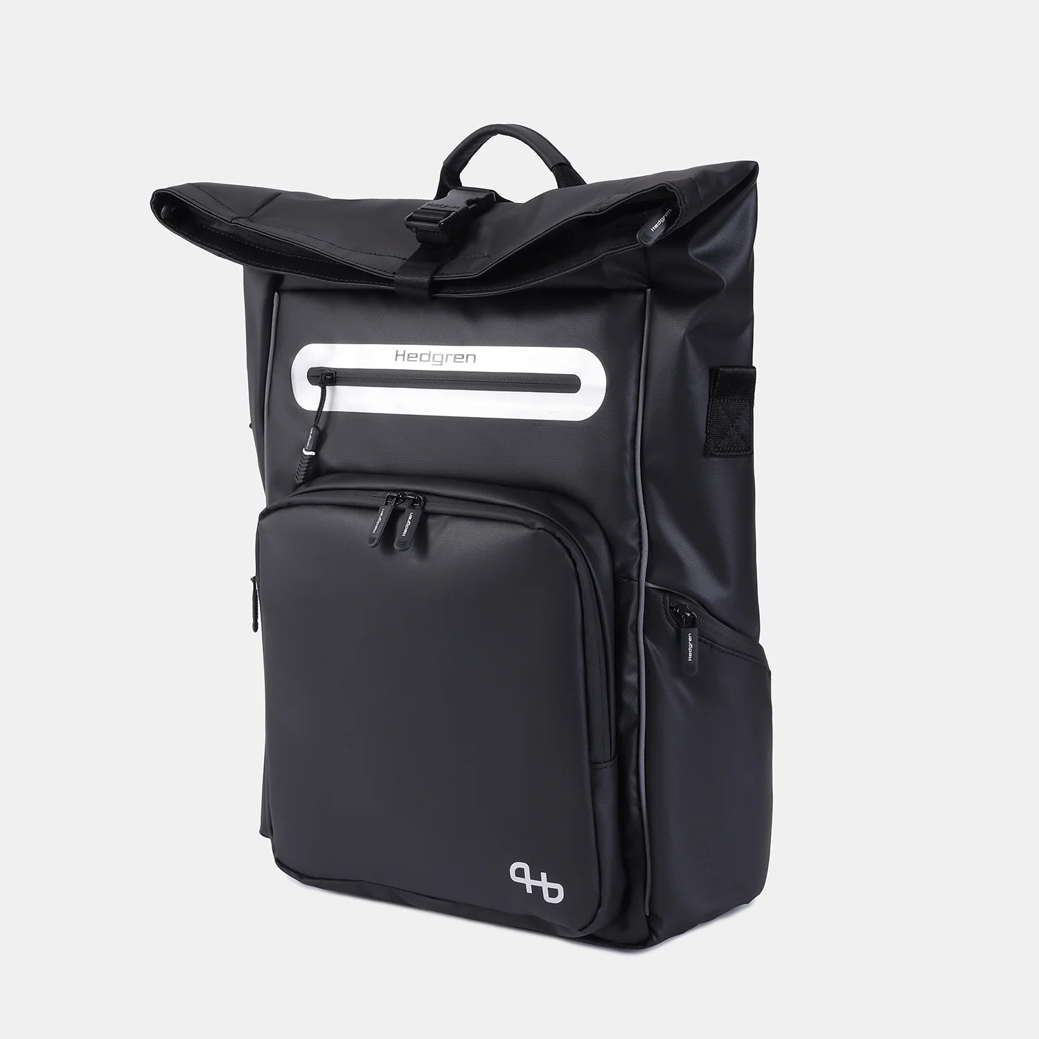 Hedgren Hub är en ryggsäck som kombinerar funktionalitet med en stilren design. Den är särskilt anpassad för cyklister och erbjuder en **mångsidig lösning** för både pendling och resande. Den vattenavvisande utsidan med reflektiva detaljer ökar säkerheten i trafiken, samtidigt som den kan fästas enkelt på styret för en smidig pendling.