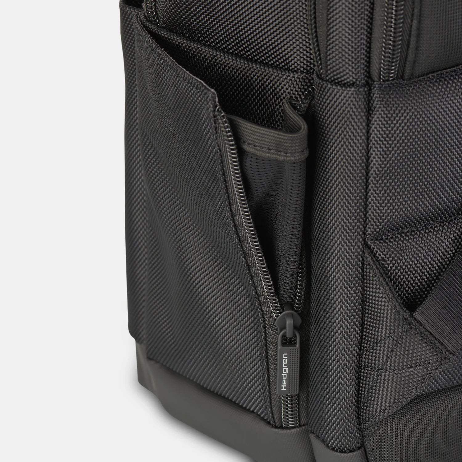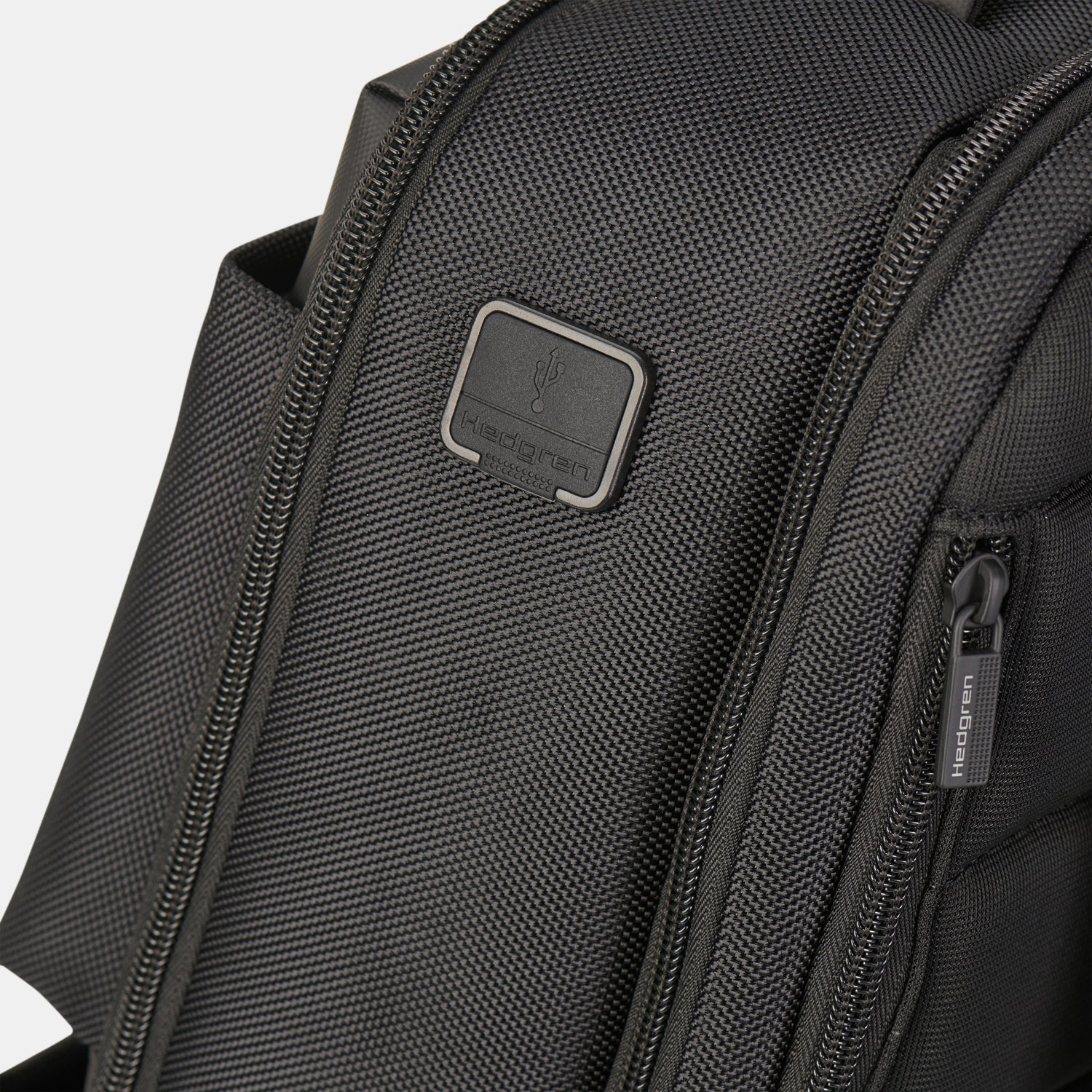 Denna ryggsäck är utrustad med en smart sleeve-design som gör det enkelt att hålla väskan nära under resor. Dessutom har den en smart USB-port, vilket säkerställer att du alltid kan hålla dina enheter laddade. Den vattenavvisande beläggningen och stiliga dragkedjorna ger ett professionellt utseende, kompletterat med Hedgrens traditionella logotyp.