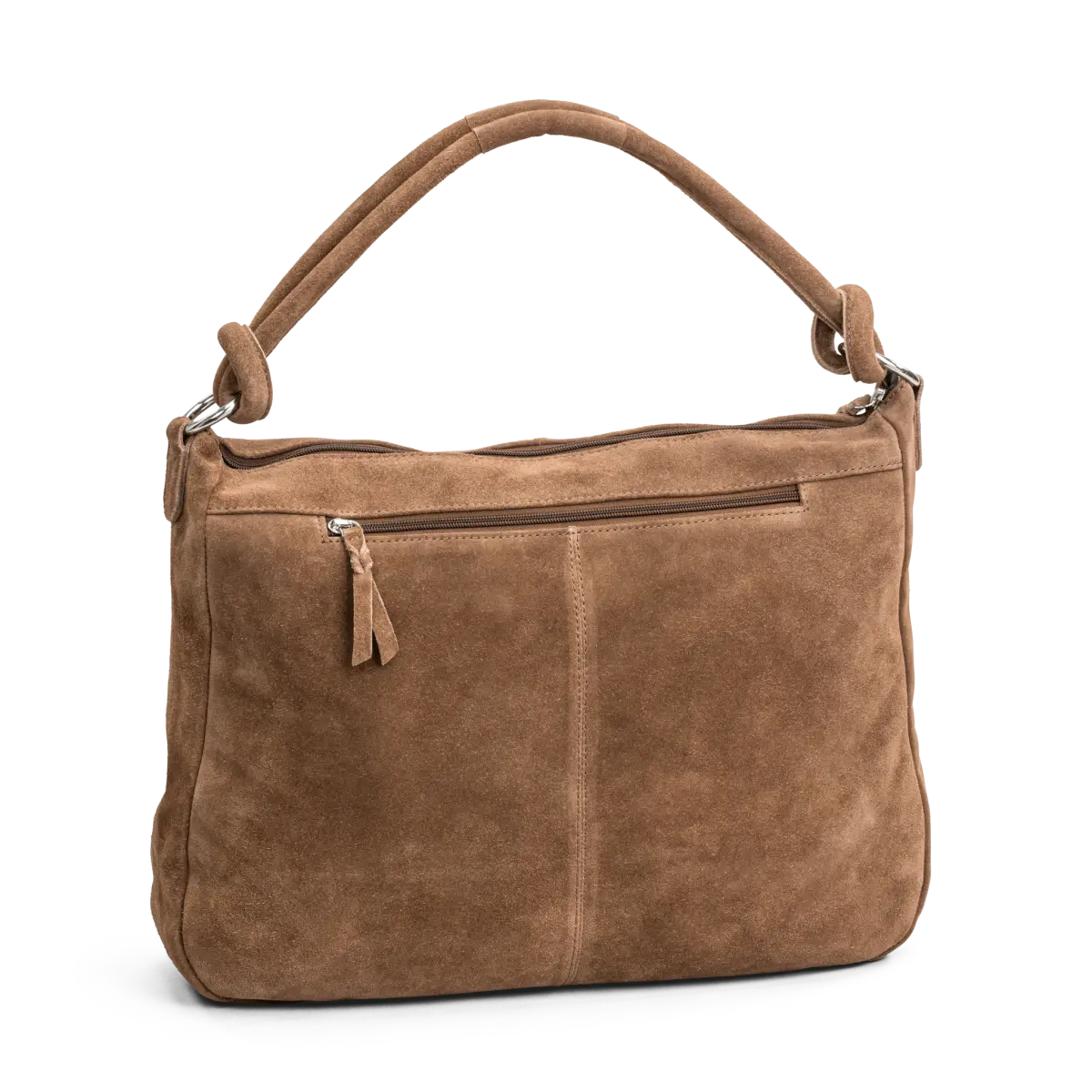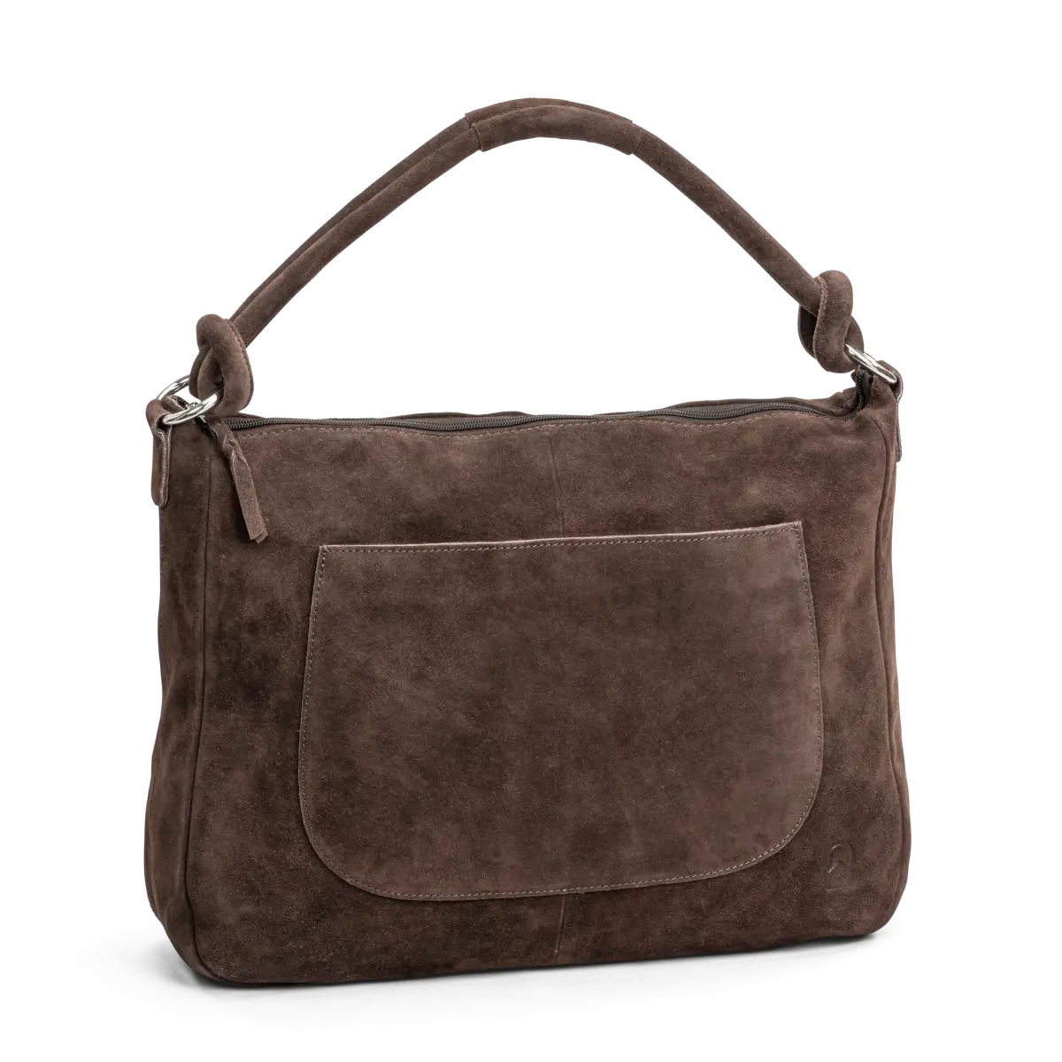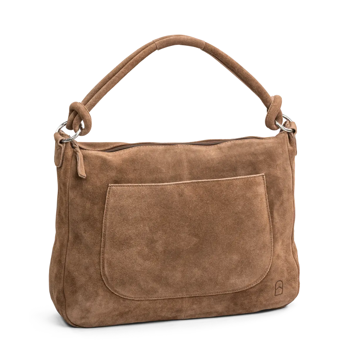 House of Nordic Boho Hoboväska 38cm är höstens snyggaste hobo – tillverkad i mjukt mockaskinn som faller naturligt och följsamt. Väskan har en avslappnad silhuett med coola knytdetaljer och silverfärgade metallinslag som ger den ett modernt och bohemiskt uttryck. En perfekt balans mellan trend och funktion.