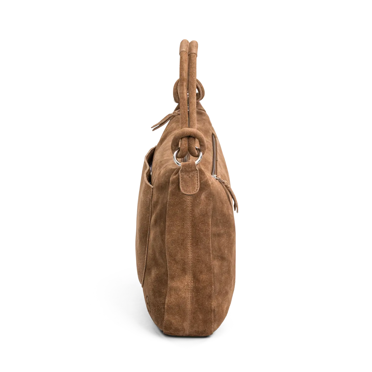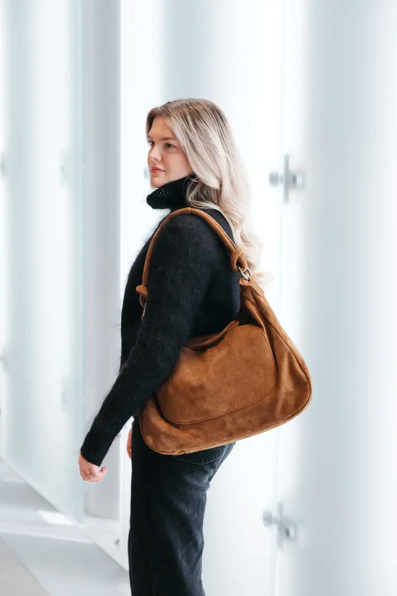 Boho Hoboväska 38cm visar tydligt House of Nordics känsla för hantverk, material och design. Mockaskinnet är av hög kvalitet och utvecklar en vacker struktur med tiden. En trendig men tidlös väska som kombinerar nordisk enkelhet med bohemisk elegans.