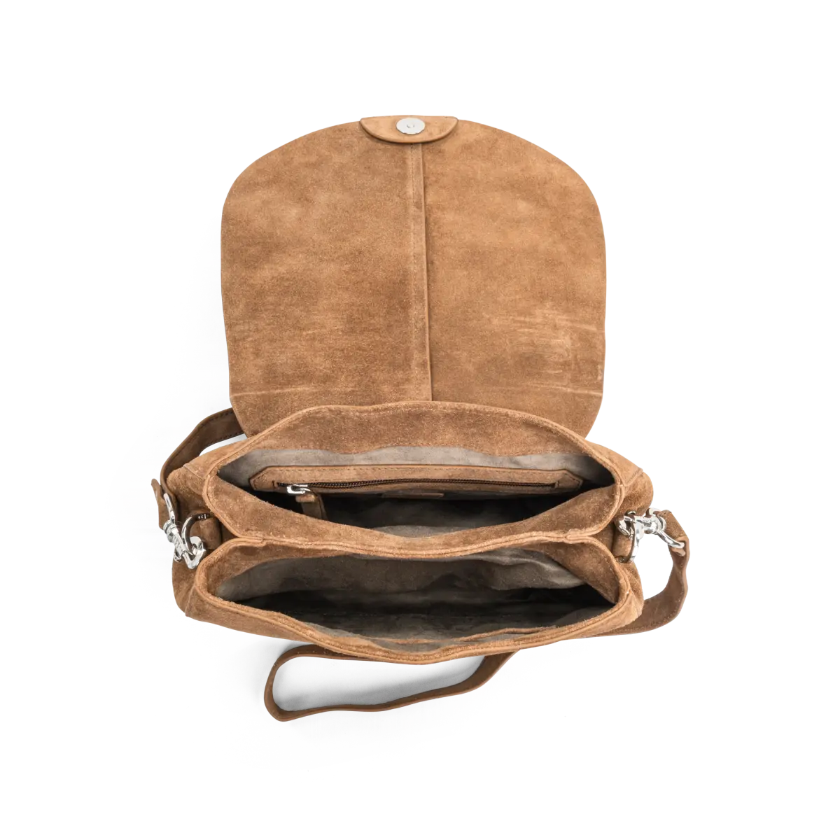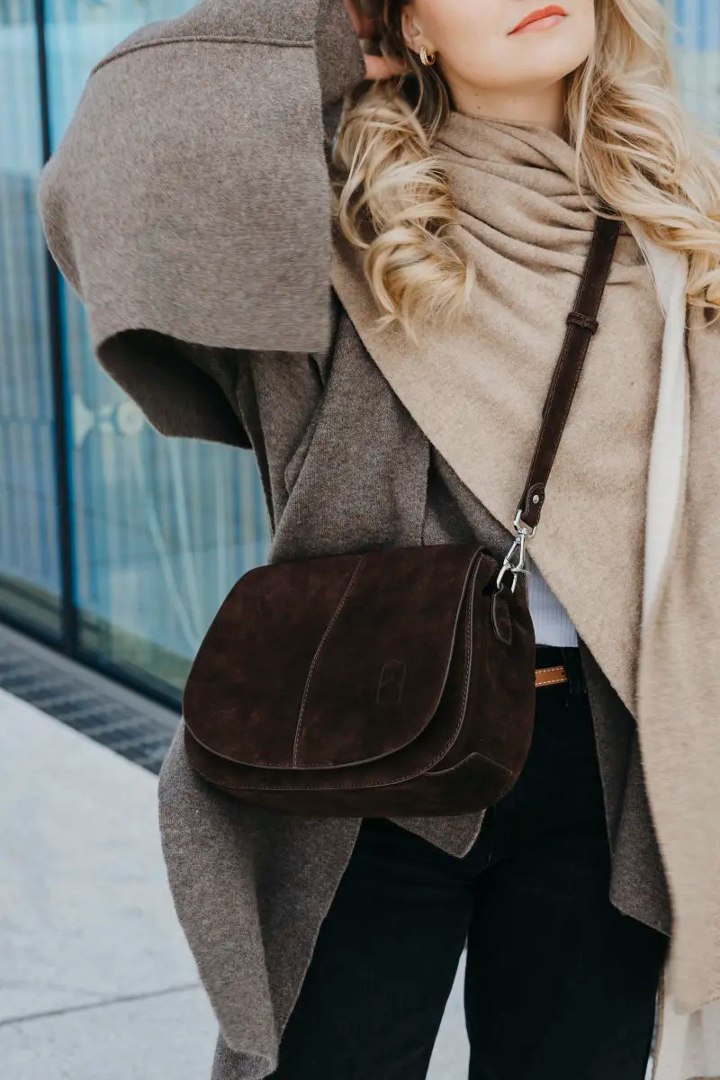 Den rundade sadelformen ger väskan ett feminint och balanserat uttryck, samtidigt som de noggrant utvalda höstfärgerna gör den enkel att matcha året runt. Den passar lika bra till jeans och stickad tröja som till en klassisk kappa eller klänning – en modell som fungerar säsong efter säsong.